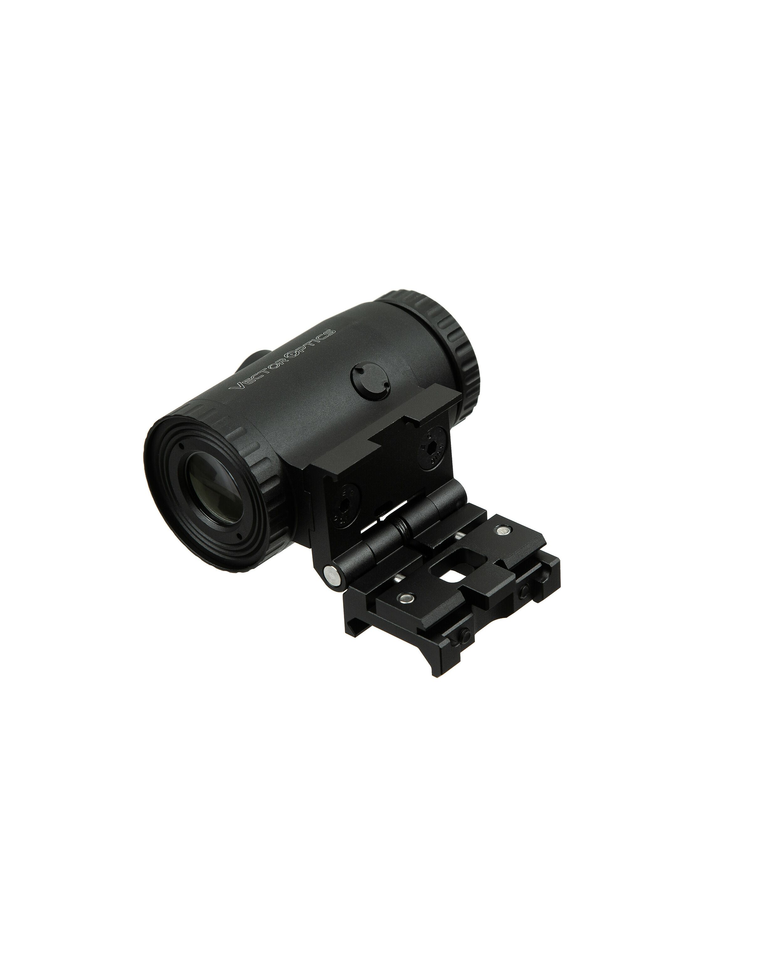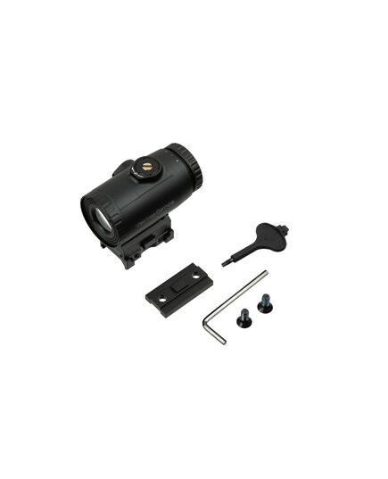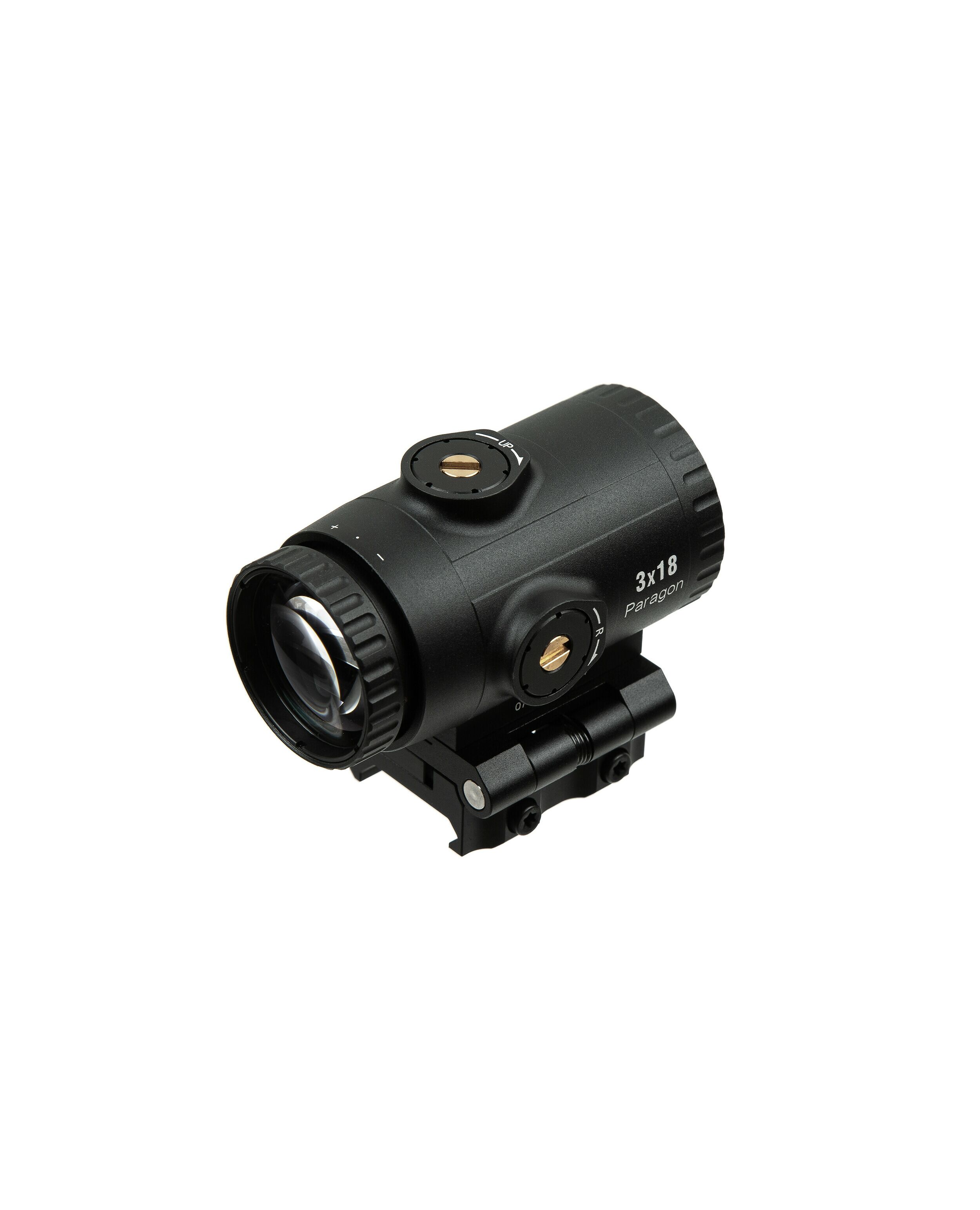 Paragon 3x18 Mini Magnifier (SCMF-33) – это компактный 3-кратный оптический увеличитель, разработанный для использования с коллиматорными прицелами. Увеличитель обеспечивает четкое изображение на средних дистанциях и позволяет быстро переключаться между увеличенным и неувеличенным режимами благодаря флип-механизму.