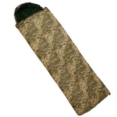 Спальний мішок з капюшоном 2,100х0,750 фліс піксель Тип: ковдровий спальник з капюшоном Розмір у мішку:  висота 50см, ширина 25см  Зовнішнє покриття: Oxford Наповнювач: Синтепон 300 Внутрішнє покриття: фліс Упаковка: компресійний мішок Температурний режим: -10 градусів...