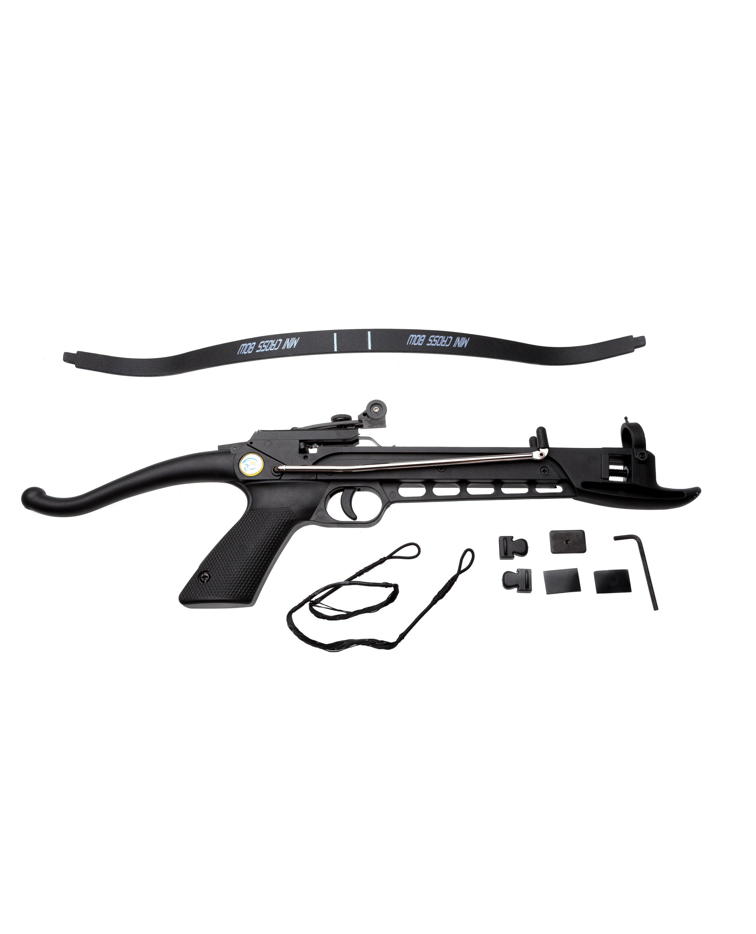 В комплект поставки входит: арбалет, плечи, тетива,открытый регулируемый прицел, 3 алюминиевые стрелы.