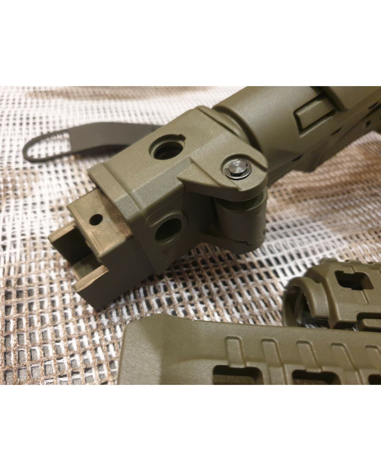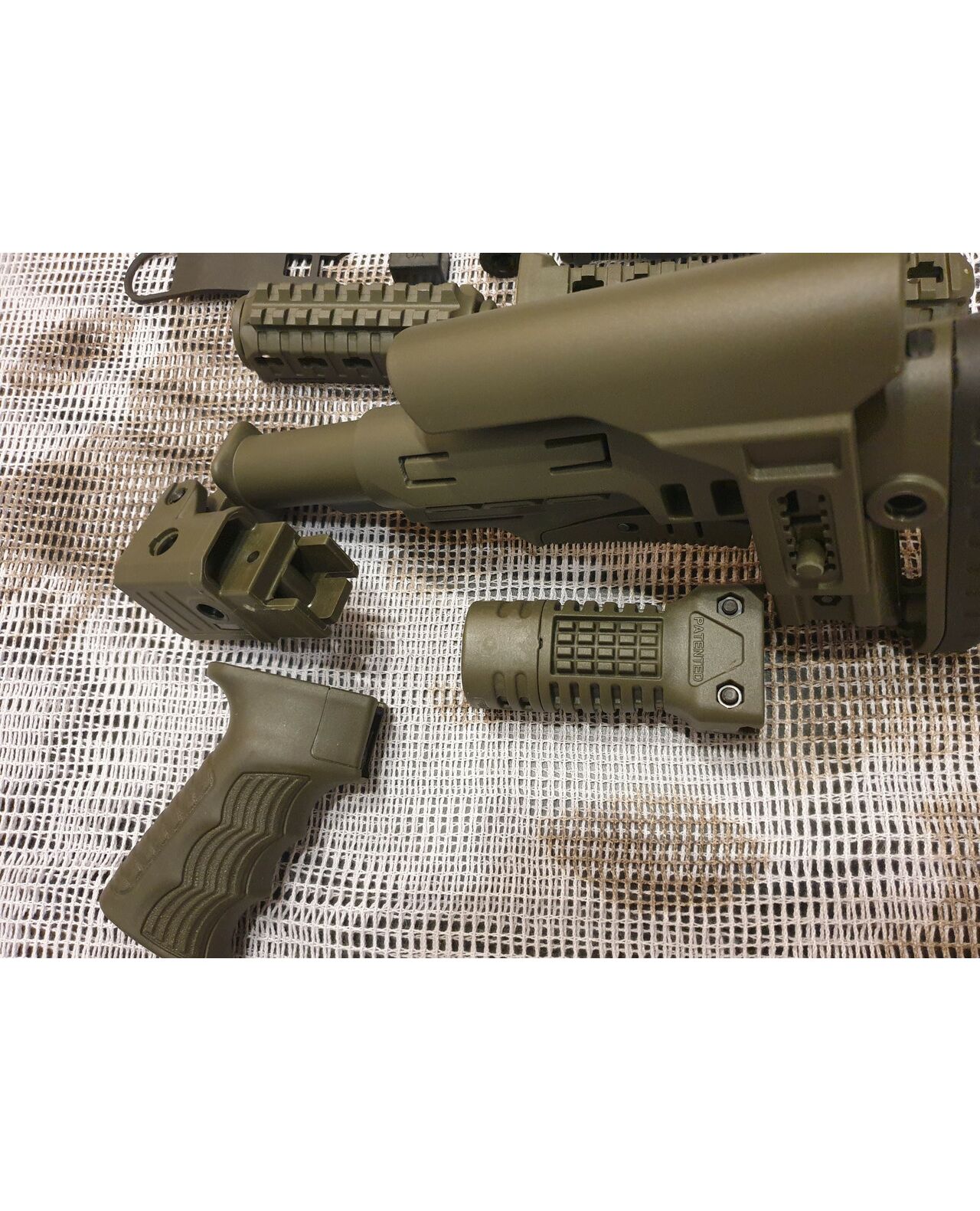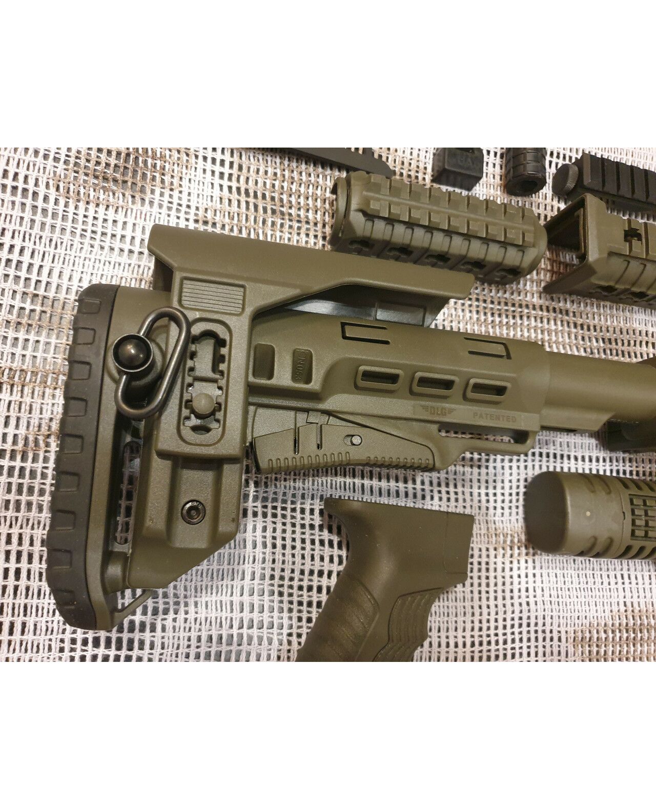 Комплект для апгрейда оружия от официального производителя аксессуаров для стрелкового оружия, фирмы DLG Tactical.Набор состоит из следующих компонентов: цевье; накладка на газовую трубку; прорезининая пистолетная рукоять; ручка переноски огня ; антабка; планка на целик для установки коллиматорных прицелов; тромикс на затвор; буфер отдачи; стальная антабка для складного приклада; складной в левую сторону телескопический приклад с регулируемой щекой. Доступный в оливковом цвете. Все монтажные саморезы в комплекте. Подходит на АК74. Идеальная замена штатного "весла" и цевья с накладкой на газовую трубку. На прикладе установлена быстросъемная антабка. Не люфтит, качественный термо пластик. Обвес изготовлен из термостойкого высококачественного армированного полимера.Не люфтит, легко устанавливается.