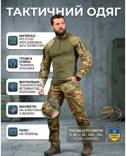 Функциональный тактический костюм Combat, разработанный для активного использования в полевых условиях, на тренировках и в повседневной службе.