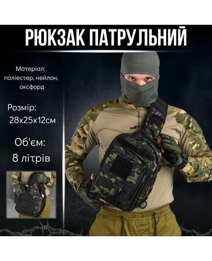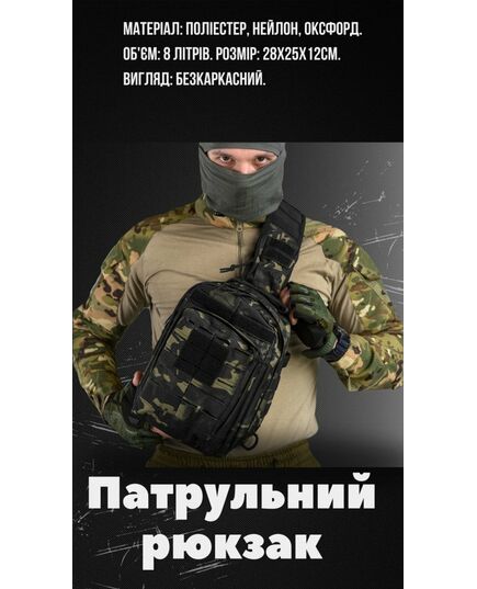 Рюкзак патрульний однолямковий SILVER KNIGHT 8л darck РГ4625