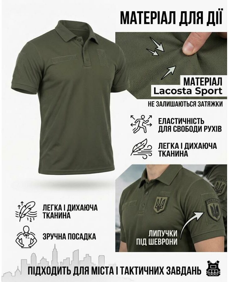 Функциональное тактическое поло для повседневной носки, тренировок и активных задач. Лёгкий дышащий материал хорошо тянется, не сковывает движения и устойчив к износу.