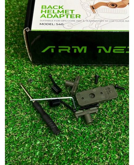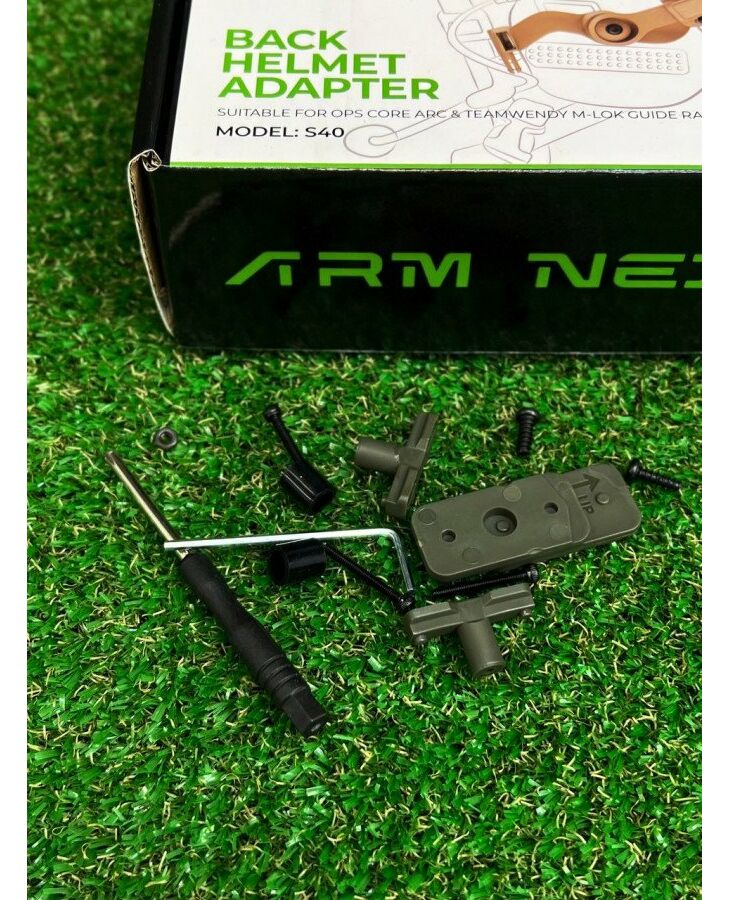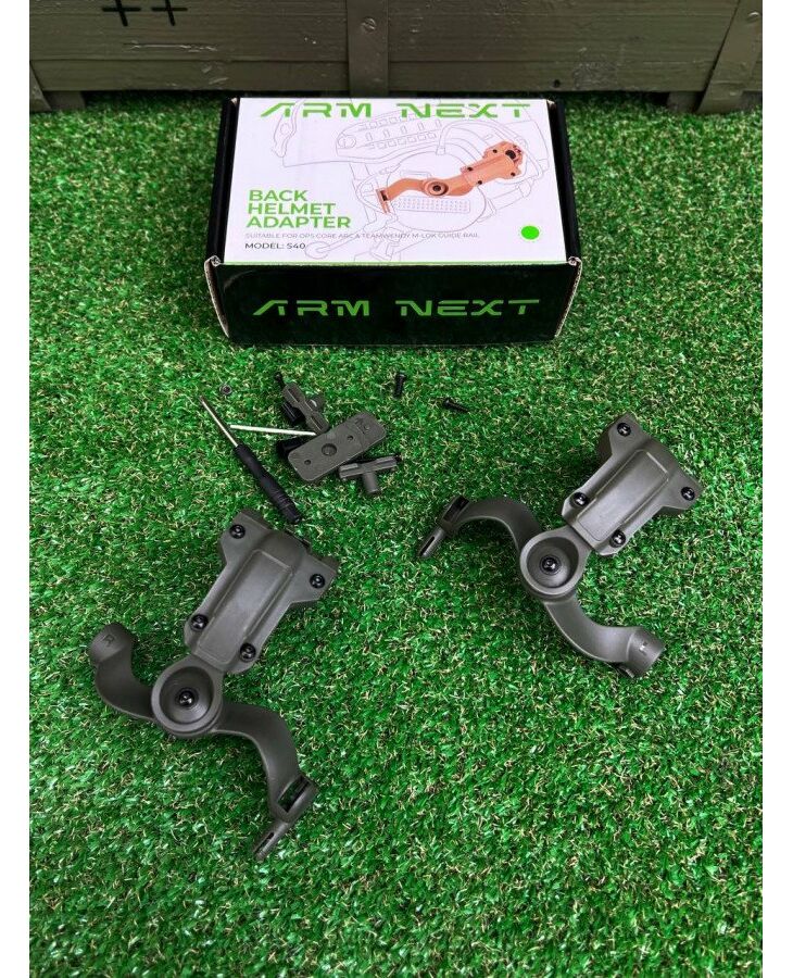 Наш комплект містить шестигранник, хрестову викрутку та гвинти/болти кріплення чашок до направляючої, а також перехідники для встановлення на рейки системи M-LOK. Для кріплення до навушників з усього асортименту перехідників і кріплень необхідно використовувати лише 1 довгий болт + 1 перехідник з кожної сторони навушників. Решта перехідників використовується для кріплення адаптера до рейки M-LOK.