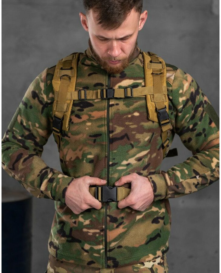 Рюкзак выполнен из прочных влагозащитных синтетических тканей Oxford плотностью 600D и 800D. Эргономика рюкзака и использованные материалы позволяют сохранять его форму независимо от загрузки. Удобное и надежное крепление ремней и лямок способствует надежной фиксации рюкзака на спине и его комфортному использованию даже при необходимости быстро передвигаться.