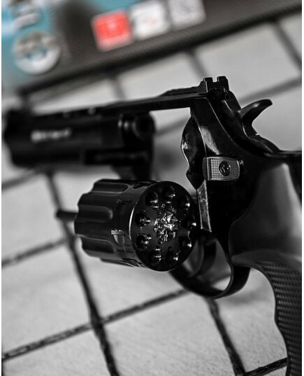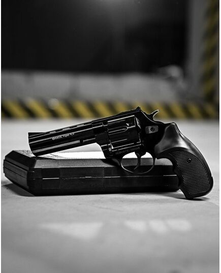 Ствол револьвера выполнен из стали, но не имеет нарезов. Калибр 4 мм, а энергия выстрела составляет не более 7,5 Дж. Эта характеристика позволяет приобретать револьвер лицам достигшим совершеннолетия (18 лет). Длина ствола 4.5” — это 114,3 мм. На стволе имеется кожух на котором расположена мушка.