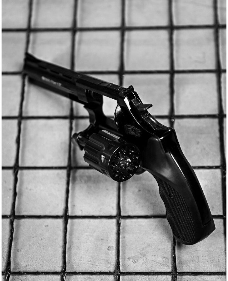 Рукоять револьвера пластиковая в чёрном цвете. При желании накладки можно заменить на буковые от револьвера ZBROIA® PROFI.