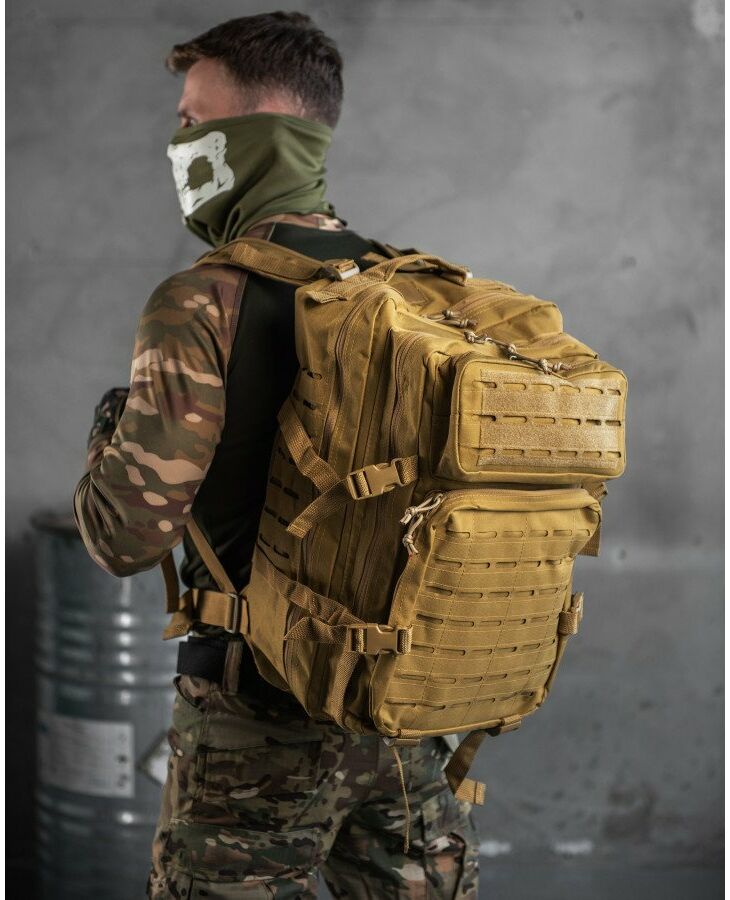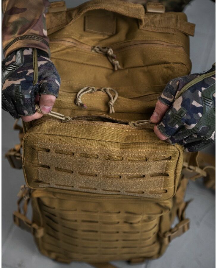 Тактический рюкзак 2E объемом 45 литров оснащен креплениями Laser Cut для фиксации дополнительных элементов и итогов. Модель является оптимальным выбором с учетом универсальности, поэтому может использоваться для любых задач, связанных с переносом или хранением большого количества снаряжения, и особенно полезен военным и волонтерам.