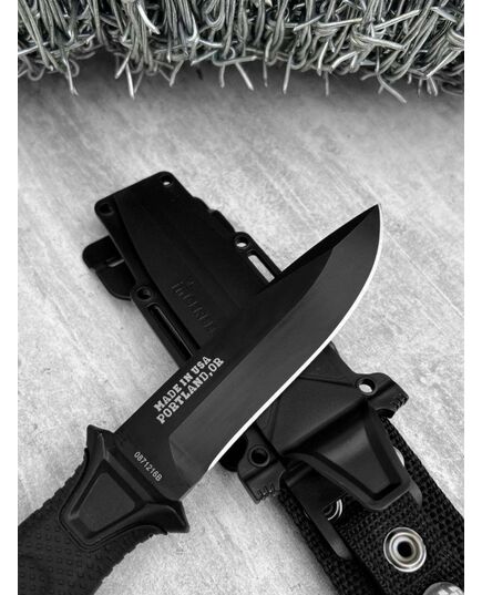 Тактичний ніж надійно фіксується в піхвах. Знімне кріплення, яке залишається на стропі, даючи змогу швидко від'єднати піхви.