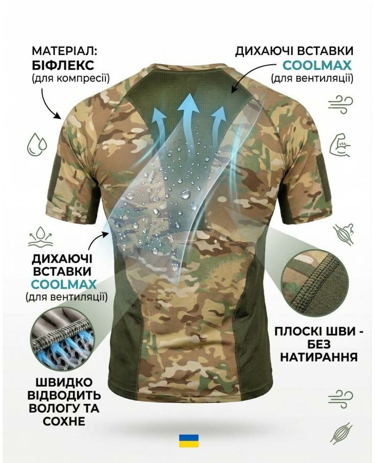 Функциональная тактическая футболка из высокотехнологичных материалов. Обеспечивает эффективный отвод влаги, вентиляцию и комфорт даже при интенсивных нагрузках.