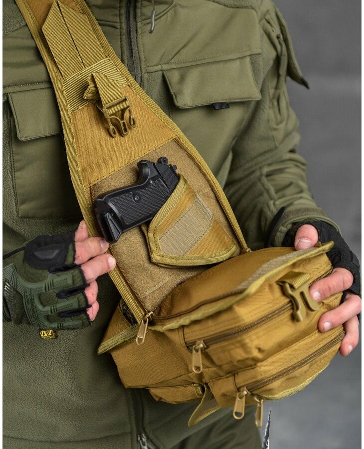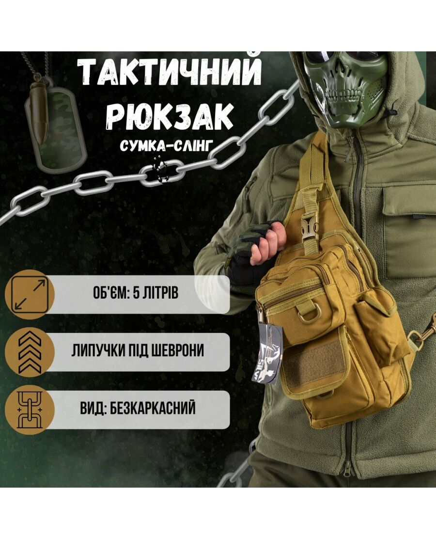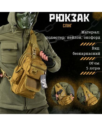 Описание Рюкзак патрульный однолямочный SILVER KNIGHT 5 л (TY-184) Материал: полиэстер, нейлон, оксфорд. Объем: 5 литров. Размер: 30х16х8 см. Вид: бескаркасный. Цвет: цвета в ассортименте. Предназначение: охота, рыбалка, туристический поход, скалолазание, путешествие, страйкбол, пейнтбол, военные действия. Однолямочный тактический рюкзак используют во время туристических походов, в экстремальных видах спорта, военных дисциплинах и военно-тактических играх. Изготовлен из полиэстера и нейлона, благодаря чему очень прочный, износоустойчивый, стойкий к деформациям. В рюкзаке есть основное отделение, два фронтальных кармана, боковой карман, внешний и внутренний карманы. Основное отделение и все карманы за исключением бокового застегиваются на молнию. Структура рюкзака позволяет переносить большое количество необходимых вещей и предметов. Бегунки на молнии больше обычных по размеру, благодаря чему расстегивать/застегивать карманы можно, не снимая перчаток. Рюкзак носят за короткую нейлоновую ручку, также – через плечо с помощью основной широкой лямки или же на спине (если использовать регулируемый ремень). Ремень оснащен стяжкой (регулятор длины) и крепится к D-кольцу с помощью разъемного металлического карабина. На D-кольцах можно переносить навесное оборудование. Тыльная сторона основной лямки и спинка рюкзака выполнены из специальной сетчатой ткани, обеспечивающей вентиляцию. Особенности: Универсальность (можно использовать в пейнтболе, во время активного отдыха, в военно-технических играх) Возможность переноски навесного оборудования Многофункциональность Наличие внутренних и внешних карманов Повышенная прочность и стойкость к деформациям Возможность носить рюкзак за короткую ручку, через плечо и на спине Вентилируемая спинка рюкзака Вместительность...