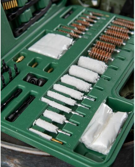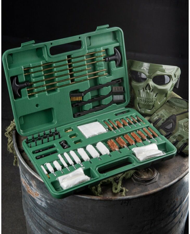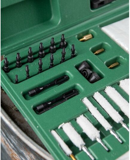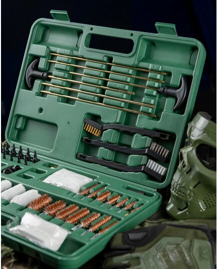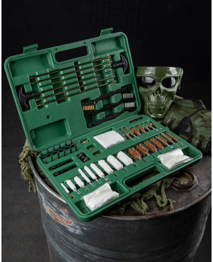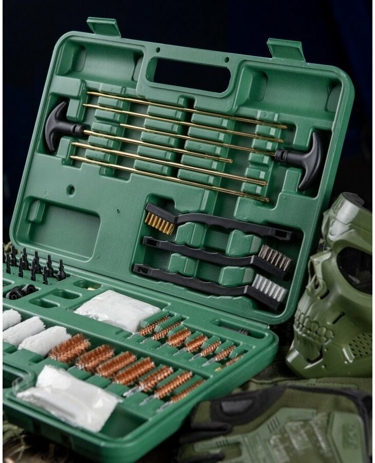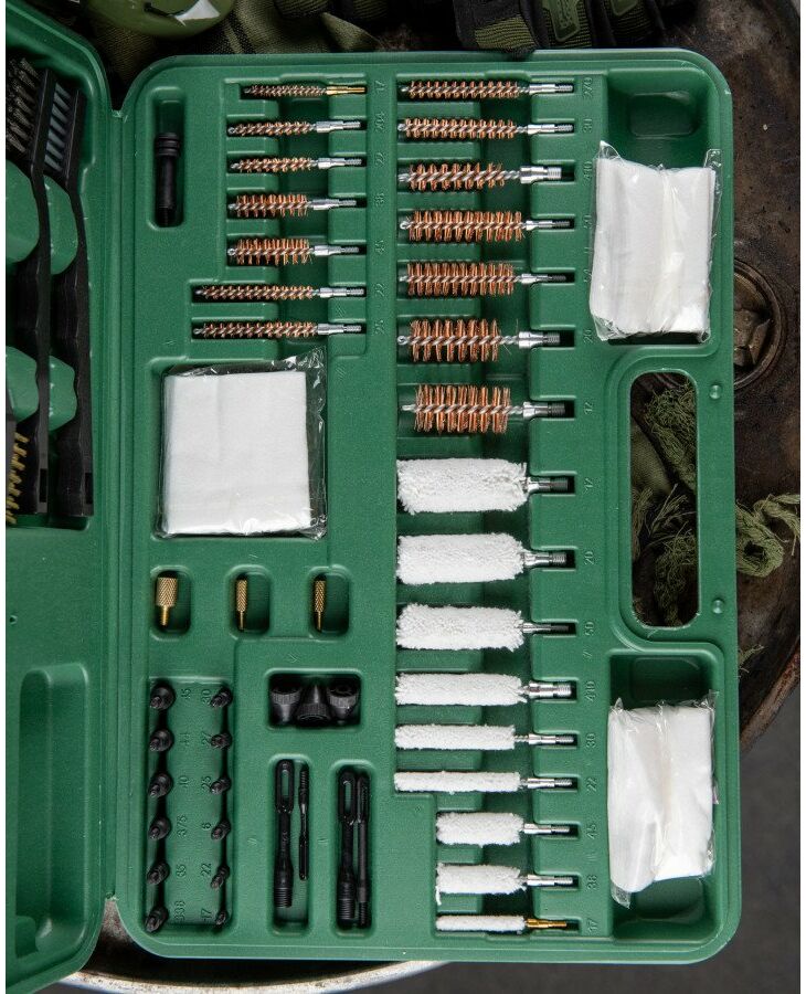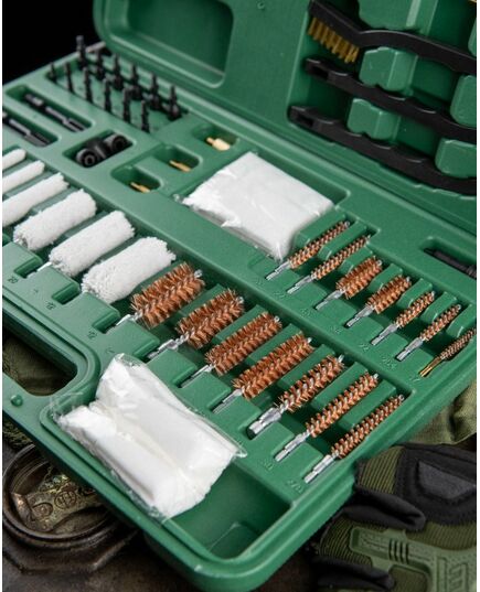 набор для чистки канала ствола оружия. Подходит для чистки оружия под наиболее популярные калибры, тем самым подтверждая свою универсальность и функциональность. Хранится в специальном кейсе. Набор может быть разделён и отдельные его элементы взяты, например в поле где и будут использоваться по назначению.