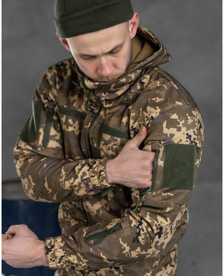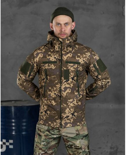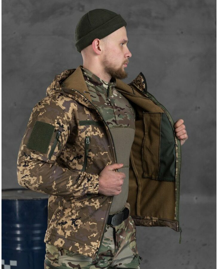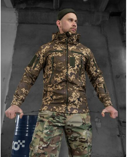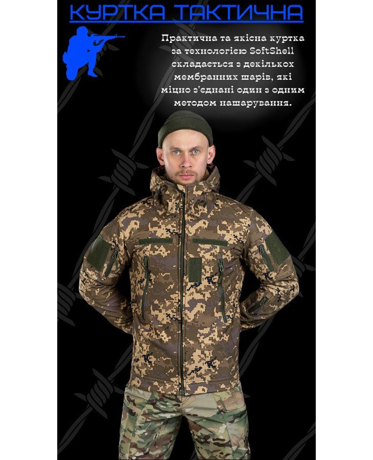 Практичная и качественная куртка по технологии SoftShell состоит из нескольких мембранных слоёв, которые прочно соединены друг с другом методом наслаивания. Внешний слой (для защиты от ветра и непогоды), состоит из прочной, водоотталкивающей и устойчивой к нагрузкам ткани. Внутренний слой имеет воздух и паропроницаемые свойства.Soft Shell - это ветрозащита, высокая паропроницаемость ткани,теплоизоляционные свойства, малый вес. Где бы Вы не находились, чем бы Вы не занимались – главная задача этой куртки – обеспечить телу максимальный комфорт при любых условиях