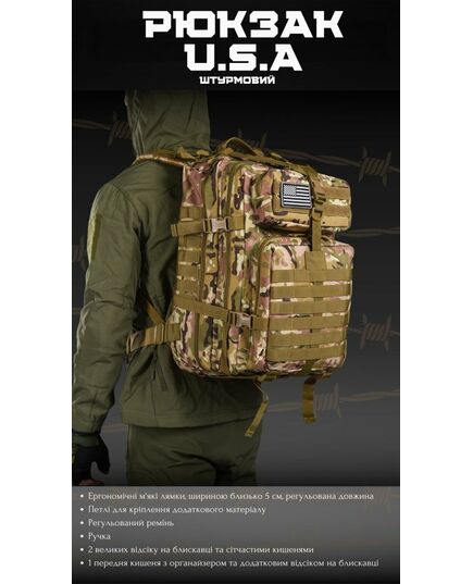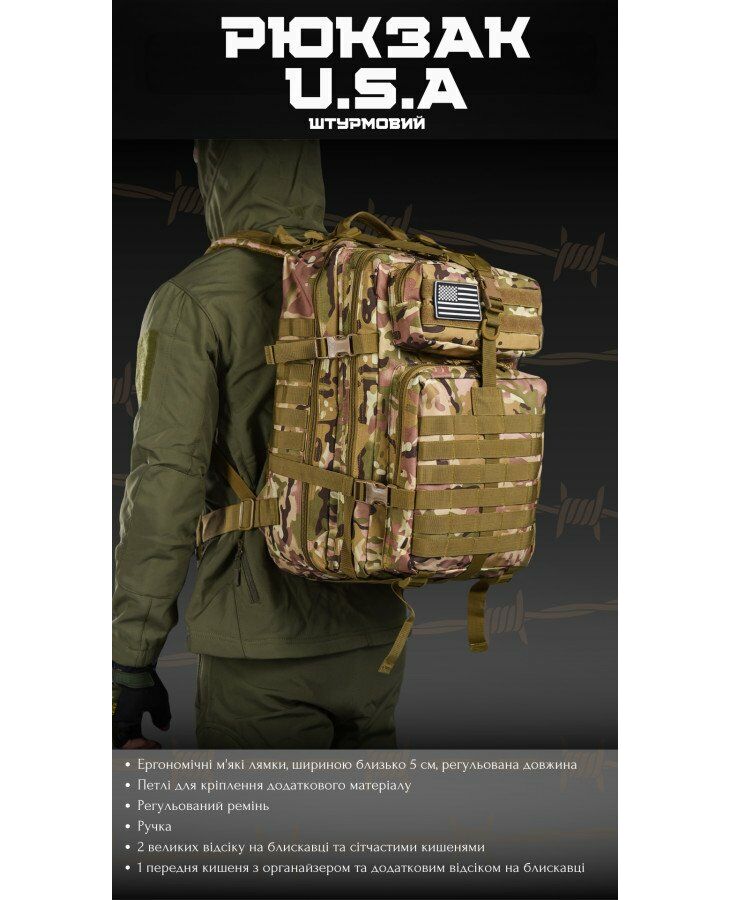 Тактический штурмовой рюкзак мультикам U.S.A 45 LUX 16-0/ К7