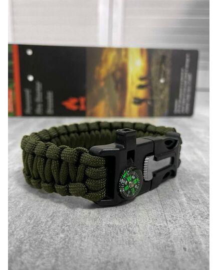 PARACORD БРАСЛЕТ З ВИСКОРЕМ, КОМПАСОМ ТА СВИСТКОМ ОЛИВА /\
