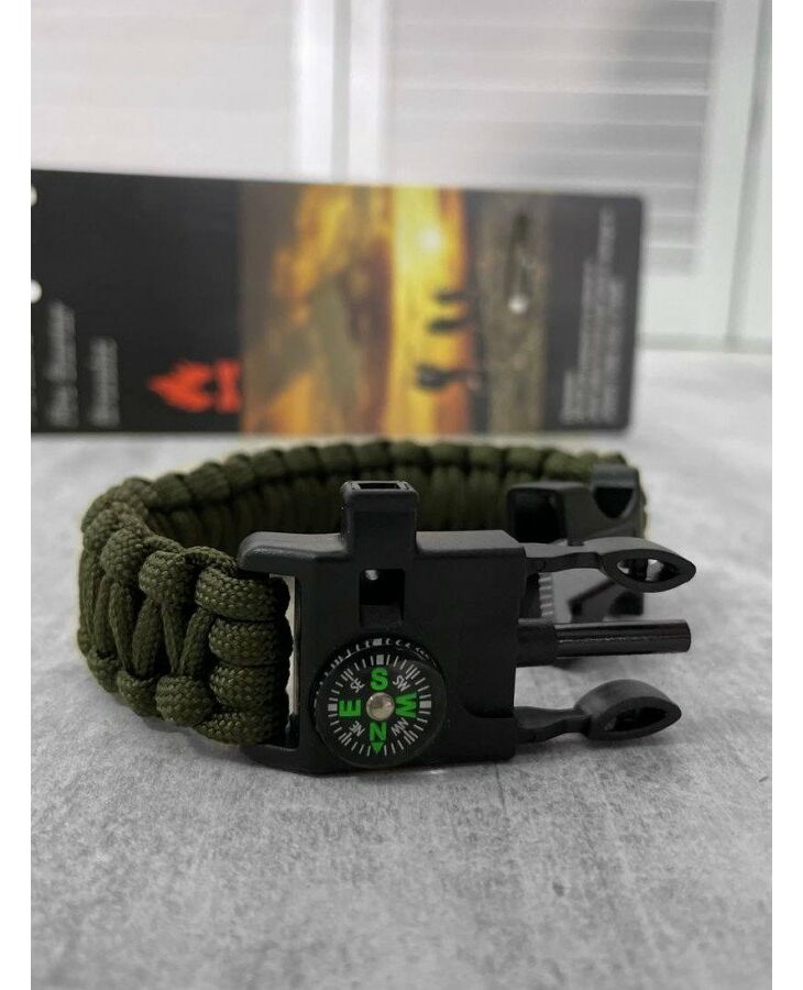 Paracord браслет з вискорем, компасом та свисток незамінний у полі. Такий аксесуар популярний у військових, повітряних гравцях, мисливцях та рибалках. Функція створення є наявність довготривалого кавуна, довжина якого в плановому стані вражає 3 метри. Розтягування здатна протистояти до 200 кілограмів ваги. Браслет на FASTEX - прикладом. Компас допоможе визначити сторони світу, вогню - вирізати іскри для розведення вогонь, а свисток повинен використовувати звуковий сигнал.