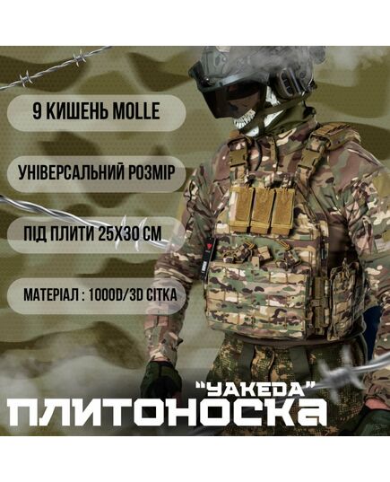 Плитоноска "YAKEDA" с 9 карманами Молли, изготовленная из материала Cordura и прошитая Армированной нитью
