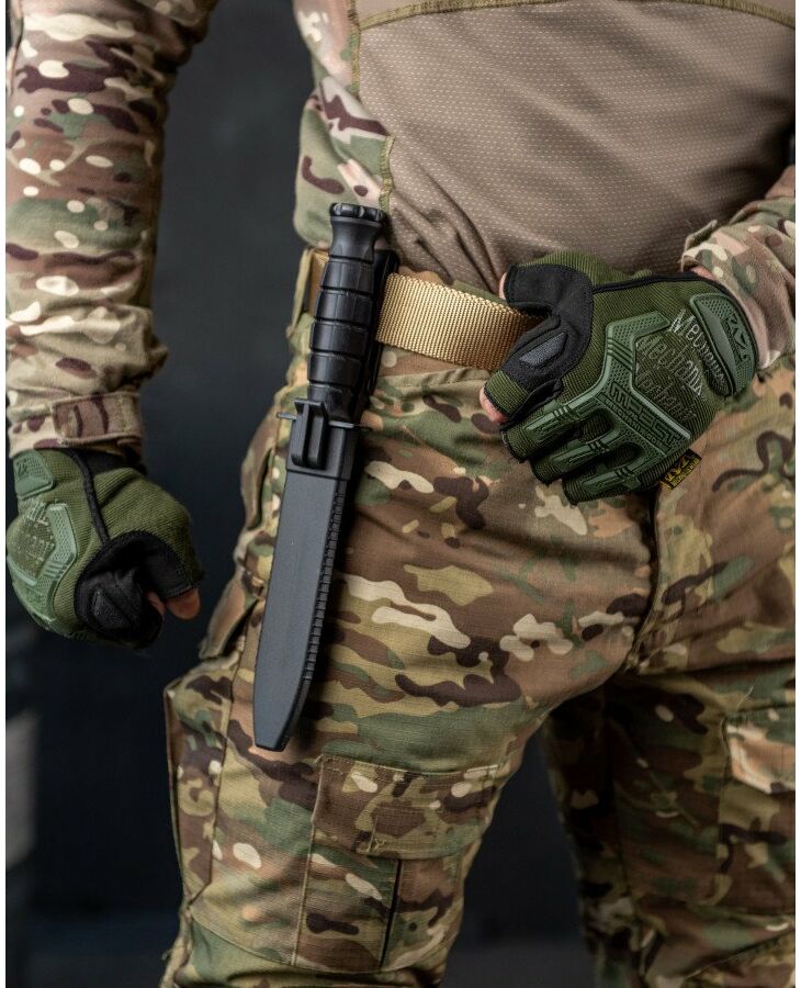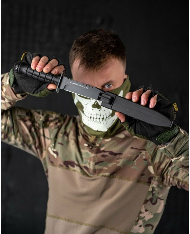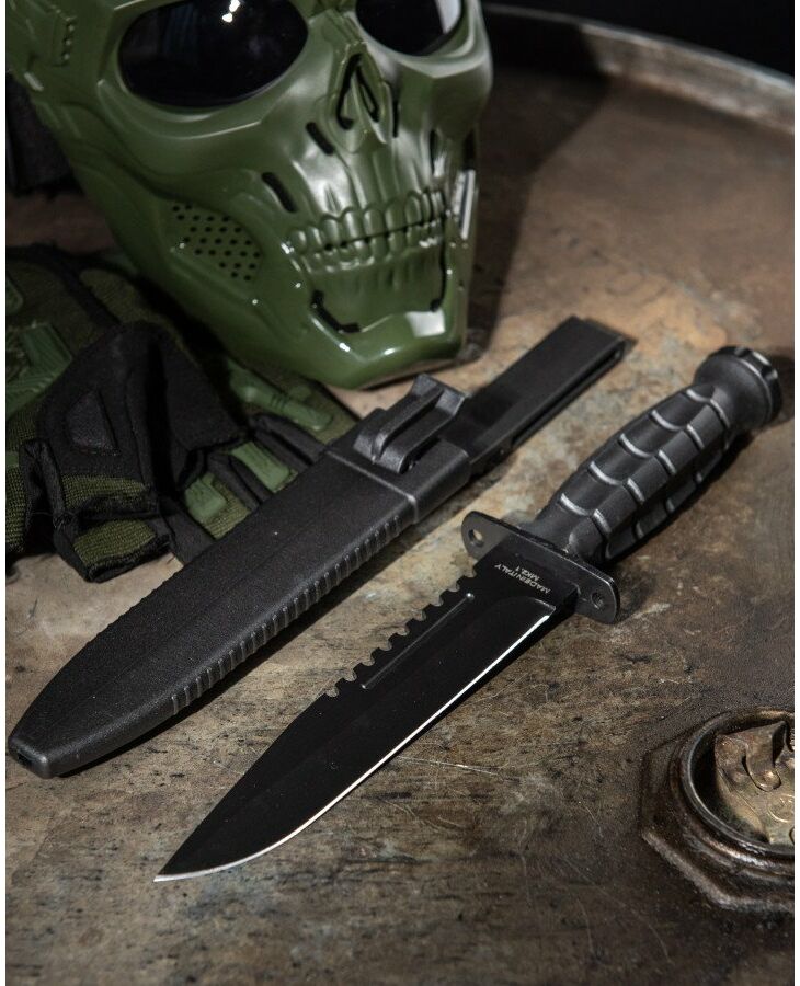 Клинок ножа изготовлен из высококачественной нержавеющей стали 440C, сохраняет остроту долгое время и легко затачивается в полевых условиях. Мощный обух говорит о надежности ножа и выдерживает большие поперечные нагрузки. Рукоть изготовлена ​​из термостойкого и текстурированного полиамида с напылением для удобного устойчивого удержания ножа.