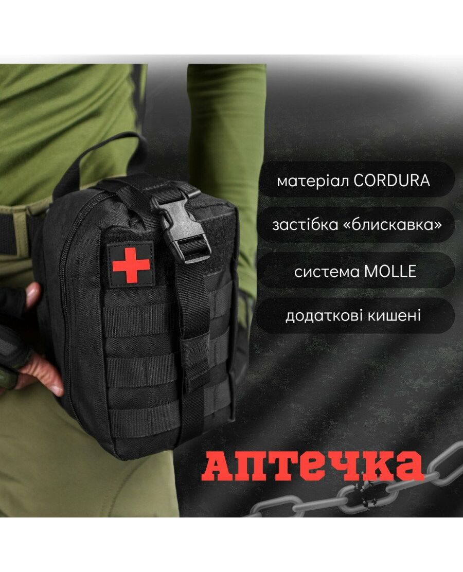 Підсумок-Аптечка закривається на застібку «блискавка» яка дозволяє швидко розкрити Підсумок-Аптечка і отримати зручний доступ до вмісту.