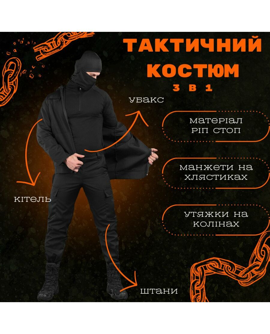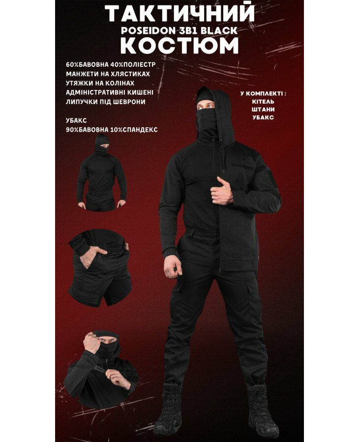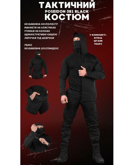 Тактический костюм Poseidon 3в1 black ВТ6702