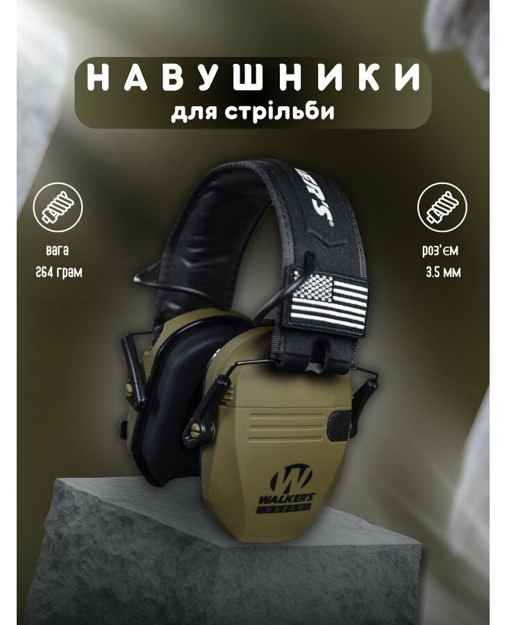 Активные наушники для стрельбы WALKER'S RAZOR с подавляющим шумом до 23db.