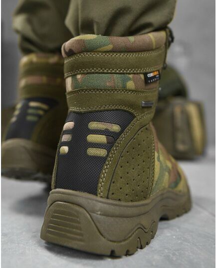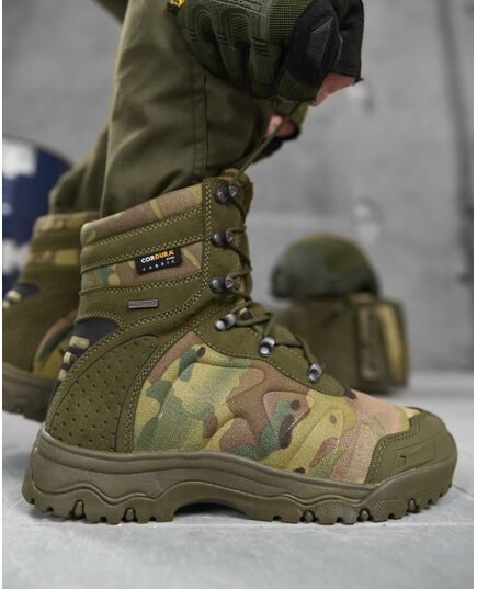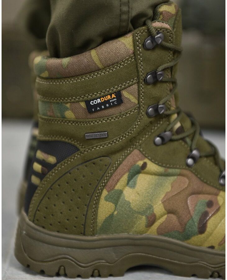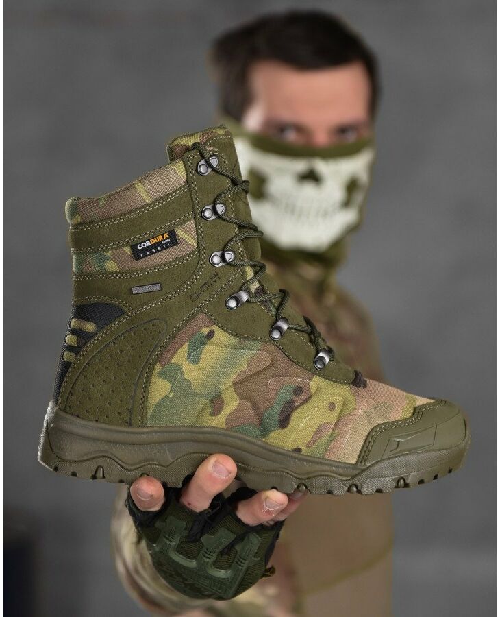 Верх комбінований, складається з трьох різних матеріалів. Перший матеріал – формована Cordura 1000D, сучасний, міцний, дихаючий матеріал, який використовують майже всі відомі бренди, другий матеріал - натуральна замша, високої якості, міцна та надійна, товщина замши від 1,6-1,8 мм, третій матеріал – формований TPU носок – головний функціонал – захист передньої частини стопи.