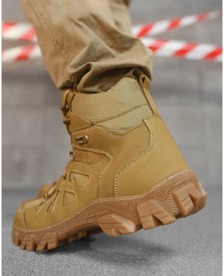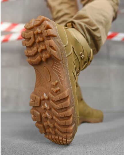 Благодаря резиновой подошве с агрессивным протектором берцы обеспечивают отличное сцепление с поверхностью и устойчивость на разных типах рельефа. Модель также обладает влагостойкостью, что позволяет использовать обувь в различных погодных условиях.