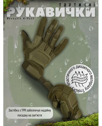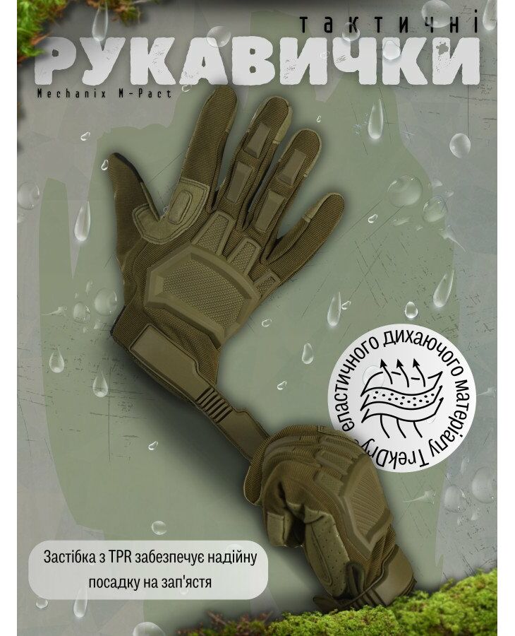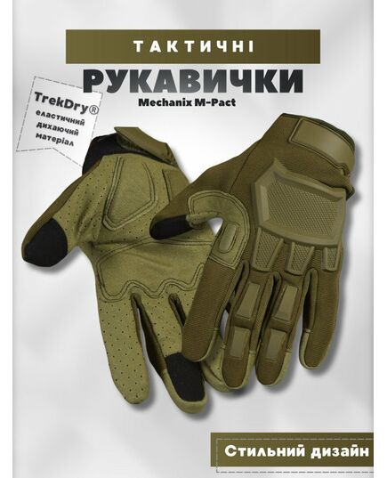Перчатки тактические Mechanix M-Pact темно-зеленый — тактические перчатки, разработанные для военных и сотрудников правоохранительных органов. Перчатки обеспечивают защиту от ударов и травм, соответствующую стандарту EN 13594.