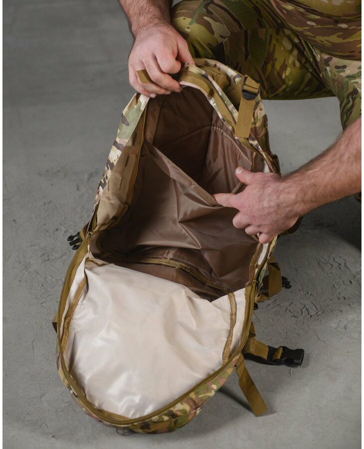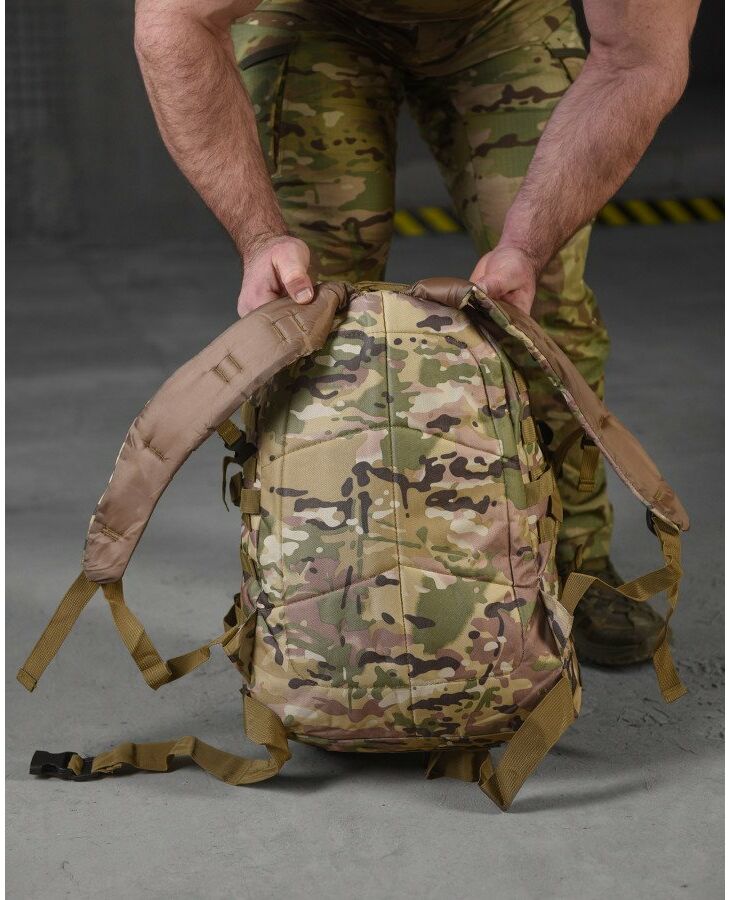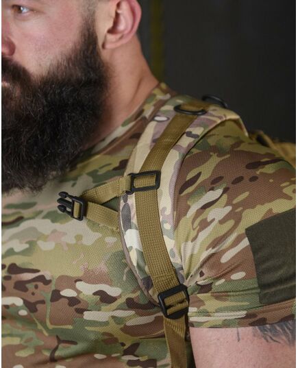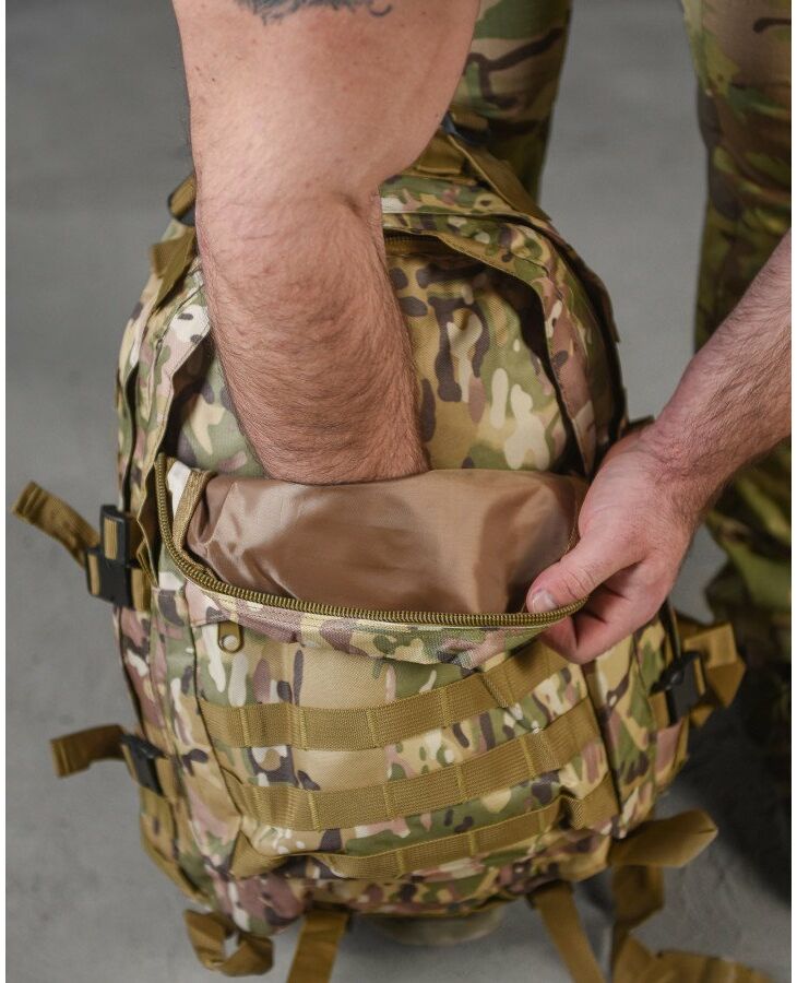 2. М'яка вентильована спинка з ущільнювачем, ергономічні плечові лямки і компресійні ремінці. За рахунок цього армійський рюкзак надзвичайно зручний в носінні, і навіть досить велику вагу в ньому практично не відчувається.