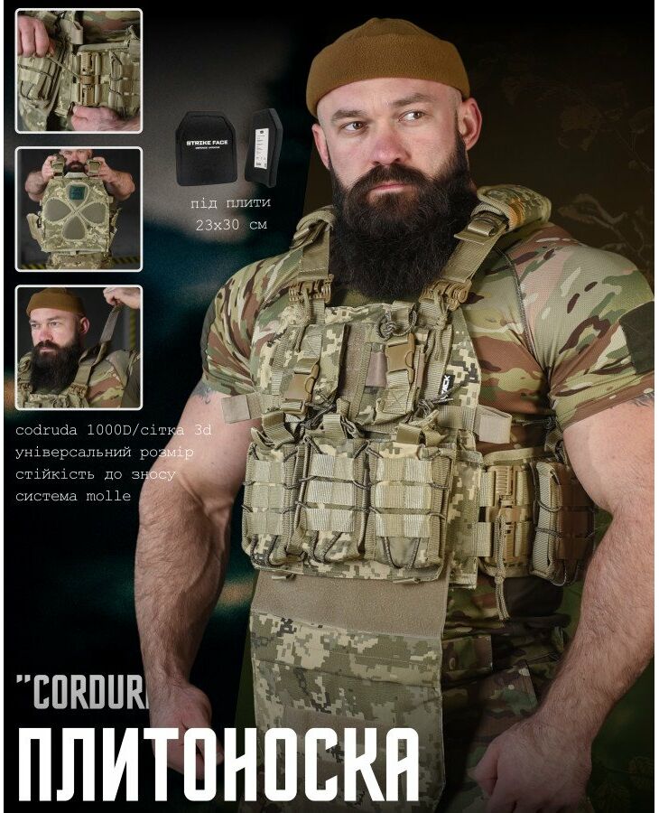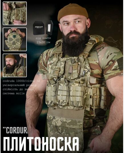 Материал Cordura 1000D обеспечивает высокую износостойкость и долговечность плитоноски даже в экстремальных условиях.
