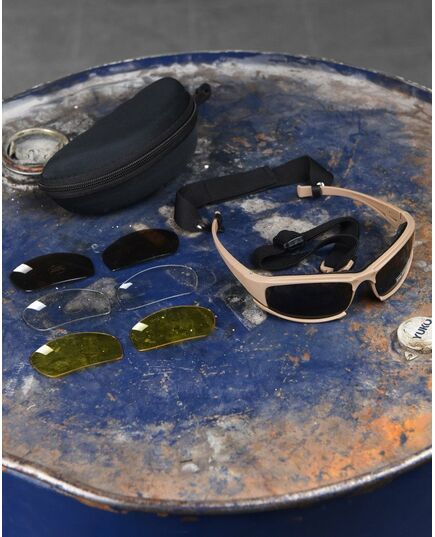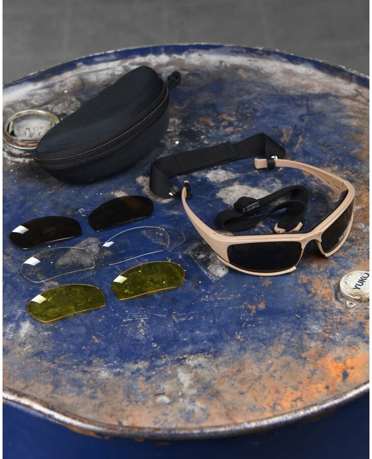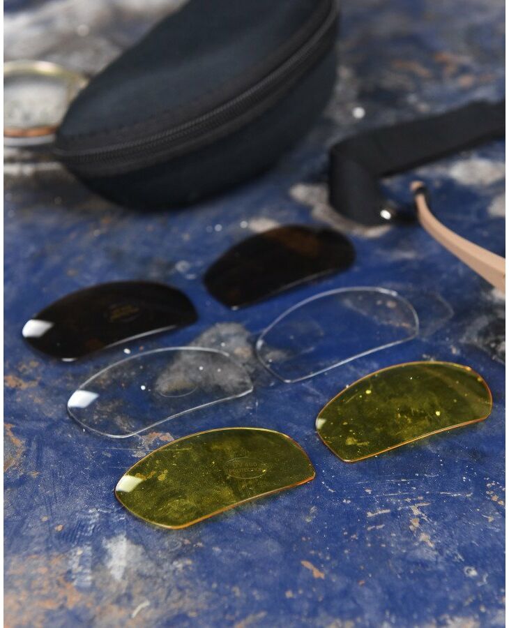 Дужки очков можно легко снять и заменить их вложенными регулируемыми ремнями Микро волокнистая салфетка. Взаимозаменяемые линзы в дымчатом, коричневатом, жёлтом и прозрачных оттенках в наборе идёт коробочка для хранения, салфетка и чехол-мешочек для очков. Применение летняя и зимняя рыбалка, охота, дневное и ночное вождение, в сумерках. Применение тактические очки нашли среди военных, байкеров, велосипедистов, любителей пейнтбола и экстримальной стрельбы, охотников, рыбаков, водителей.
