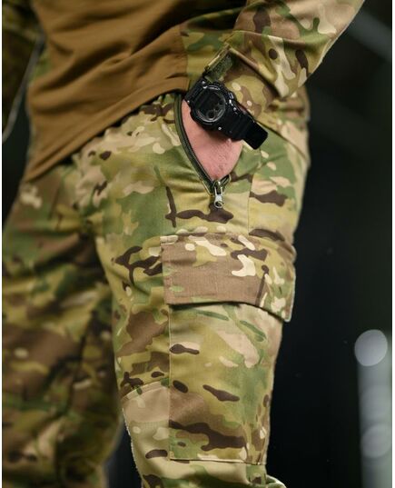 - Брюки с усиленными зонами и множеством функциональных карманов.