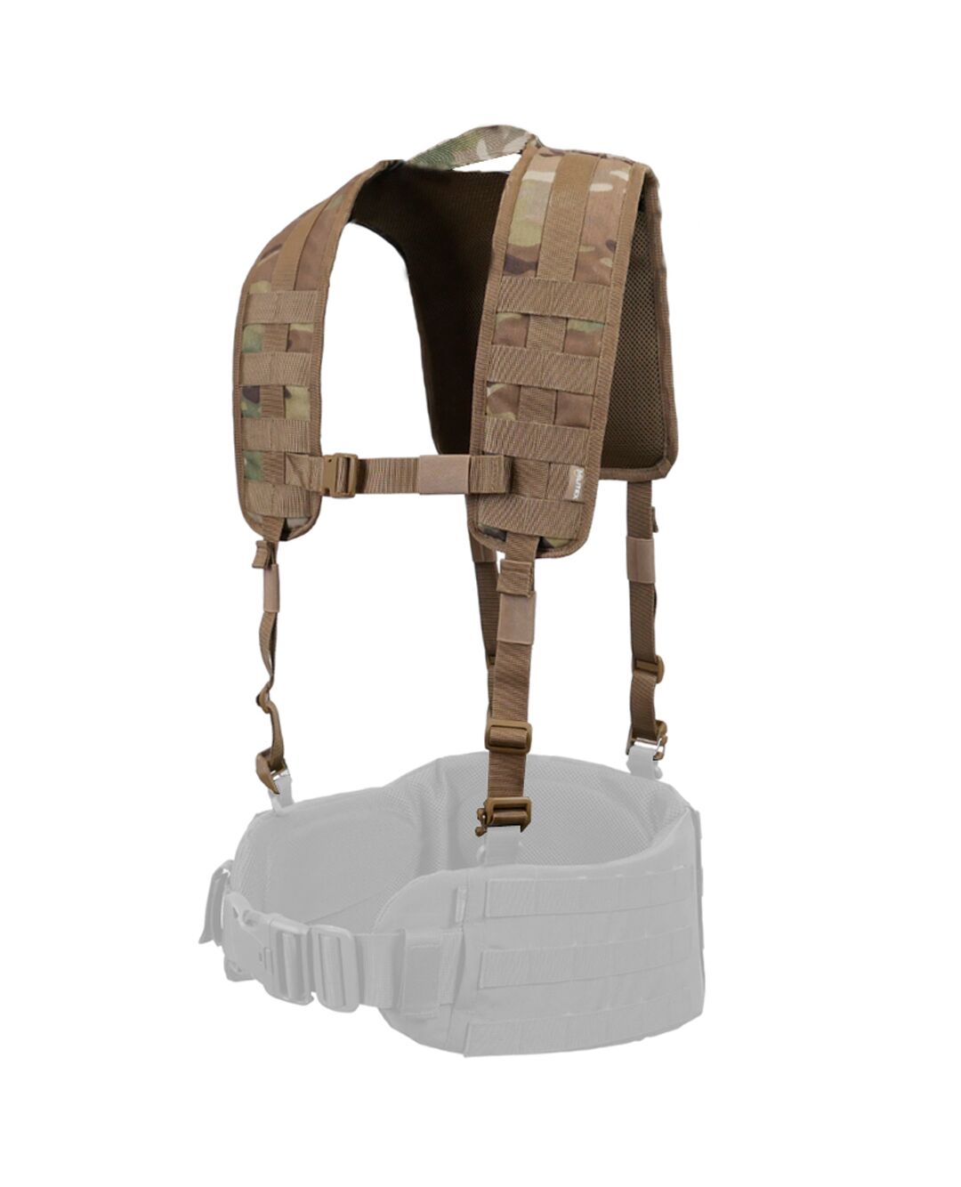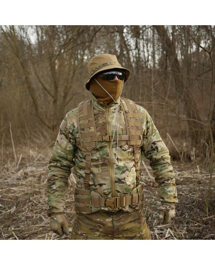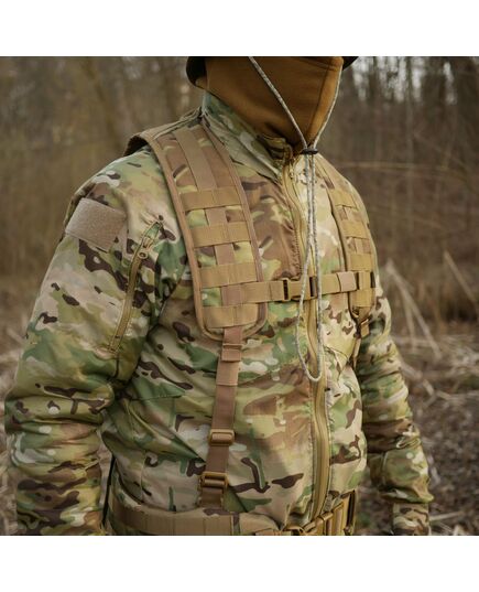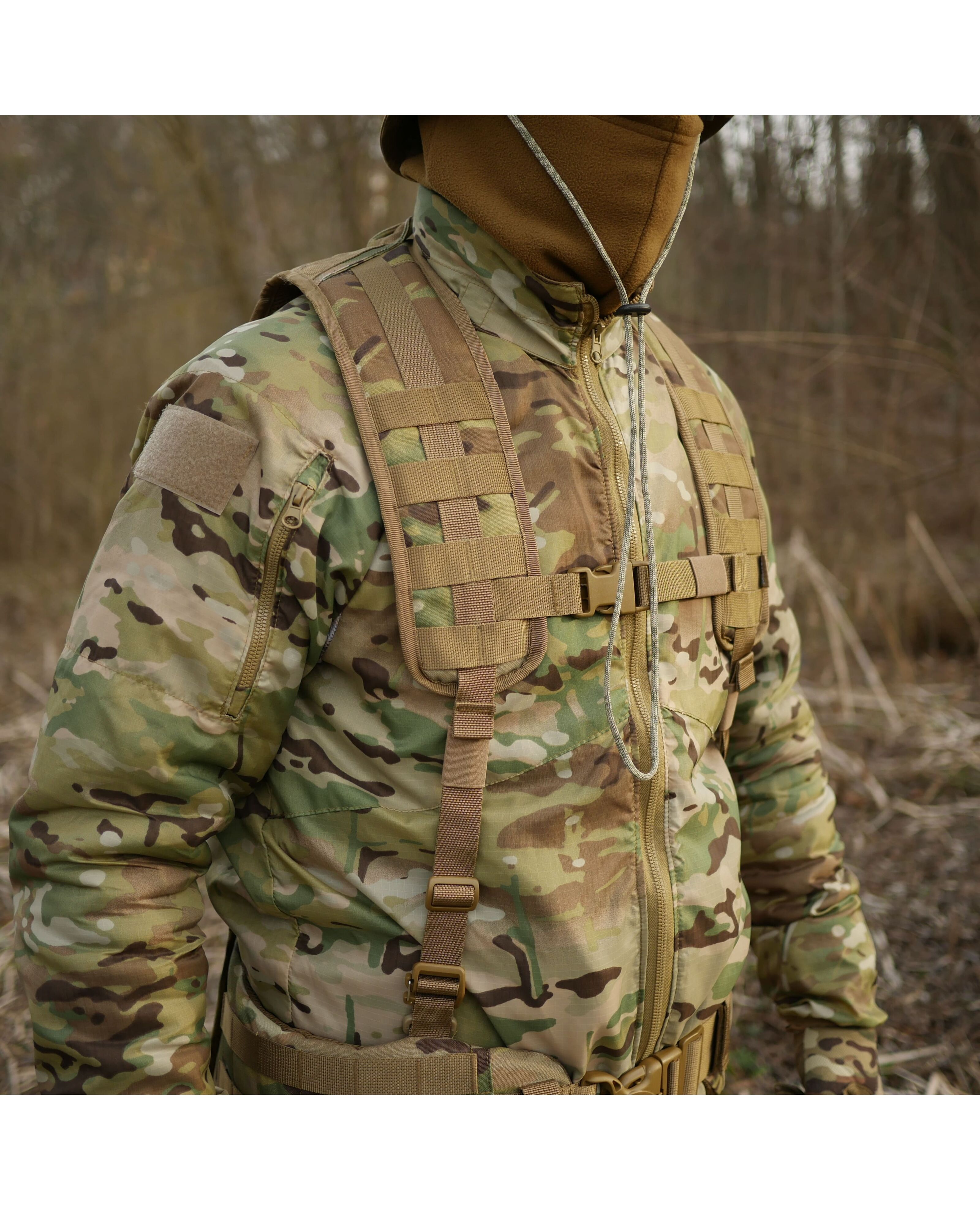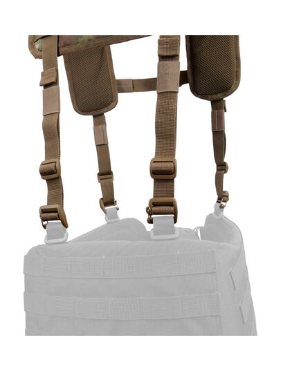 Конструкция. Плечевые лямки имеют рюкзачную конструкцию с системой MOLLE на спине для закрепления дополнительного снаряжения. Обладают внутренним демпферным слоем пены толщиной 5 мм и мягкой 3D сеткой для вентиляции. На лямках предусмотрено 5 рядов MOLLE по спине и по 4 спереди. Нагрудный соединительный ремень позволяет регулировать ширину лямок.
