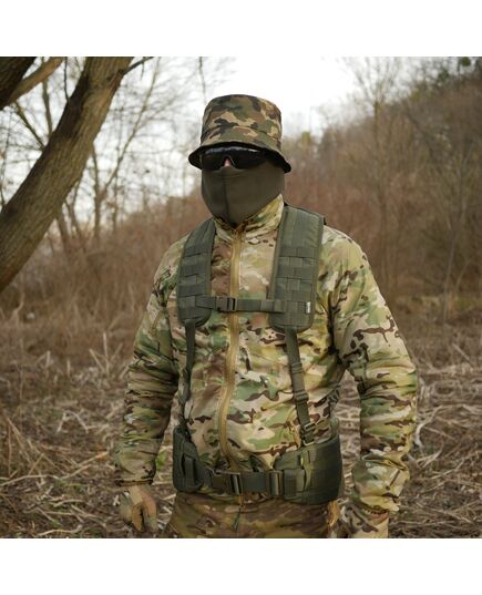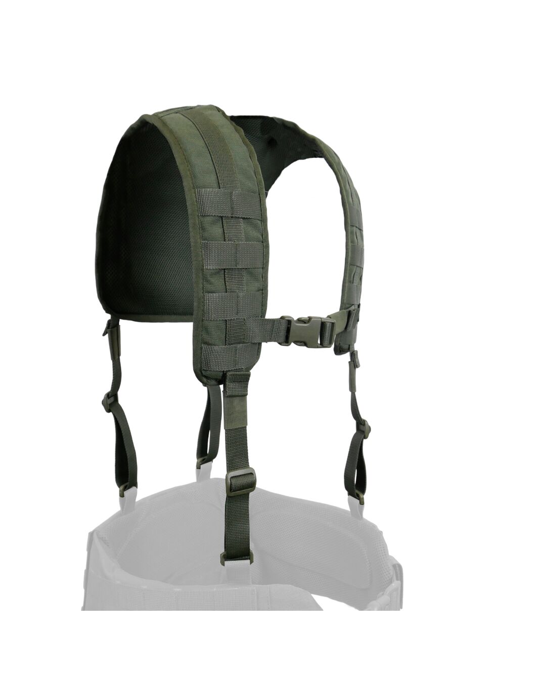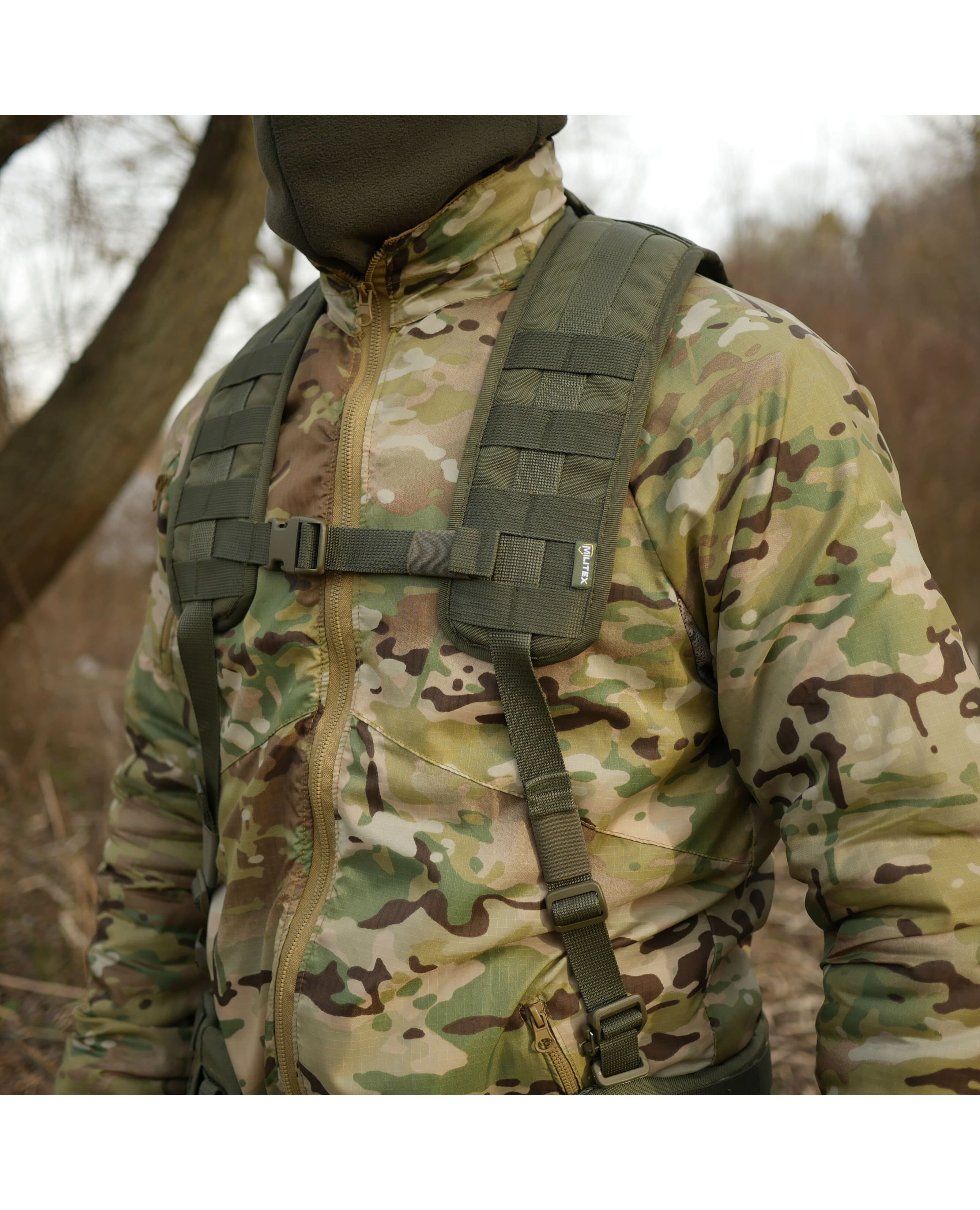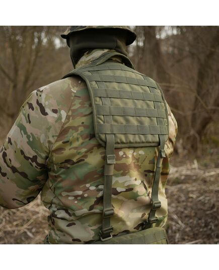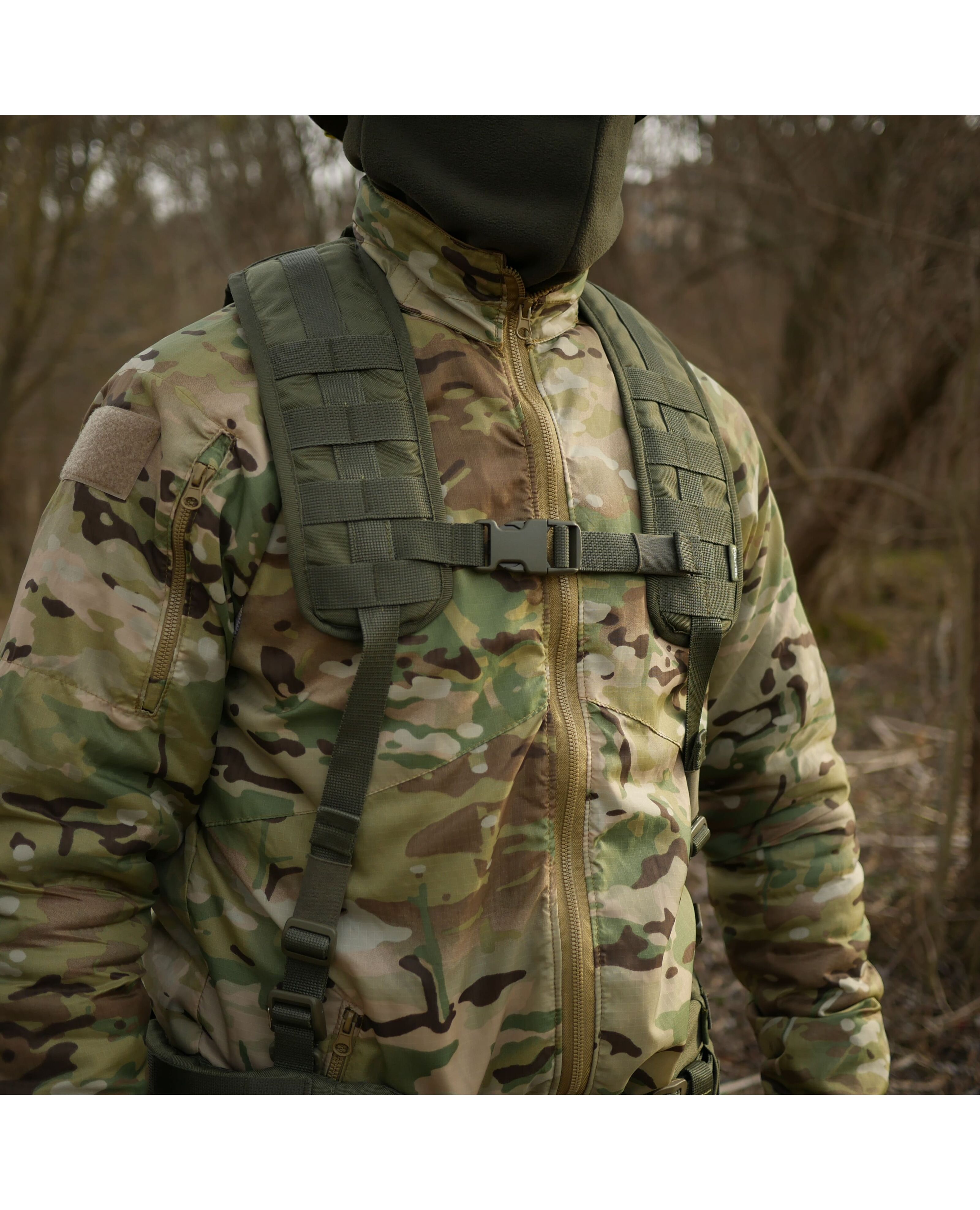Конструкция. Плечевые лямки имеют рюкзачную конструкцию с системой MOLLE на спине для закрепления дополнительного снаряжения. Обладают внутренним демпферным слоем пены толщиной 5 мм и мягкой 3D сеткой для вентиляции. На лямках предусмотрено 5 рядов MOLLE по спине и по 4 спереди. Нагрудный соединительный ремень позволяет регулировать ширину лямок.