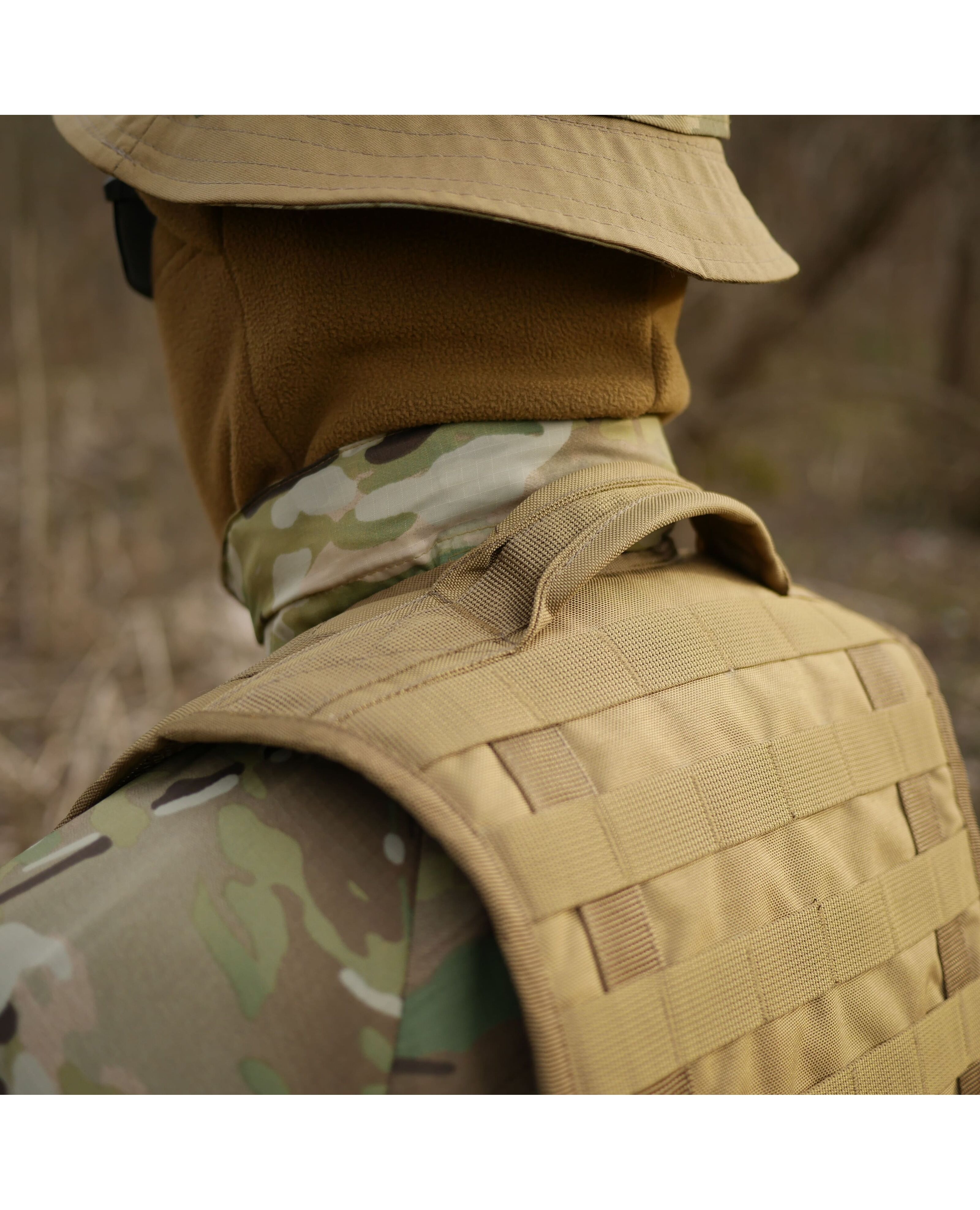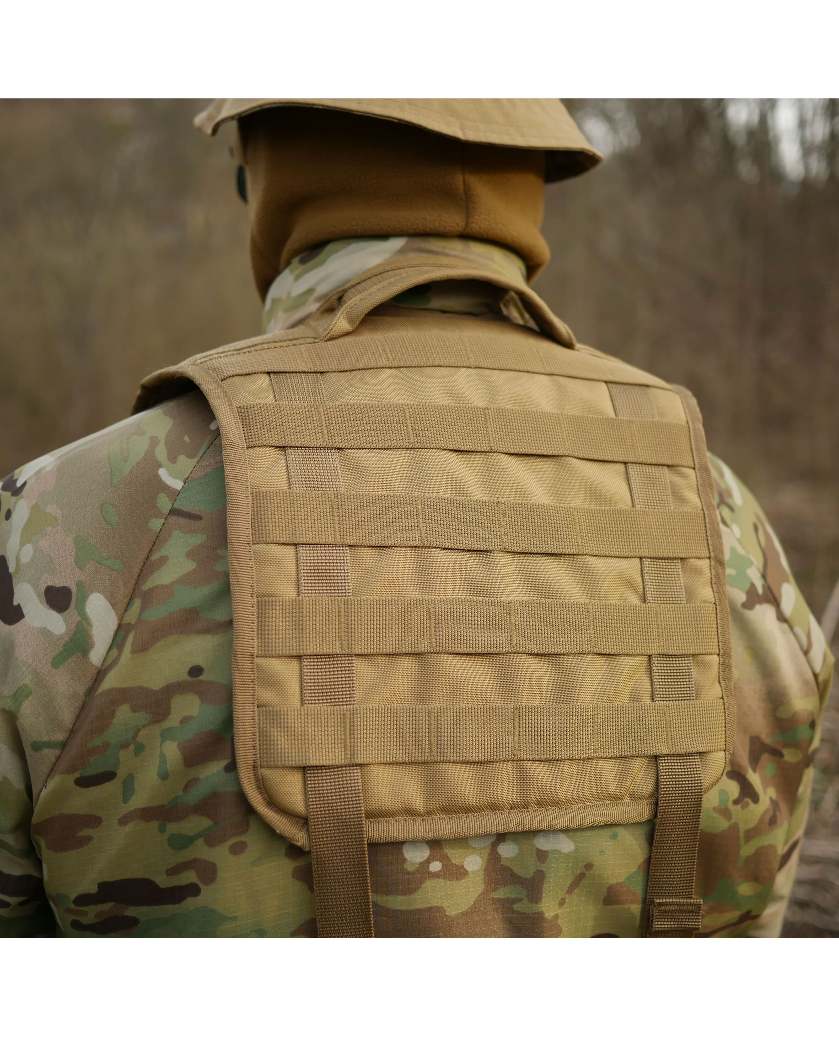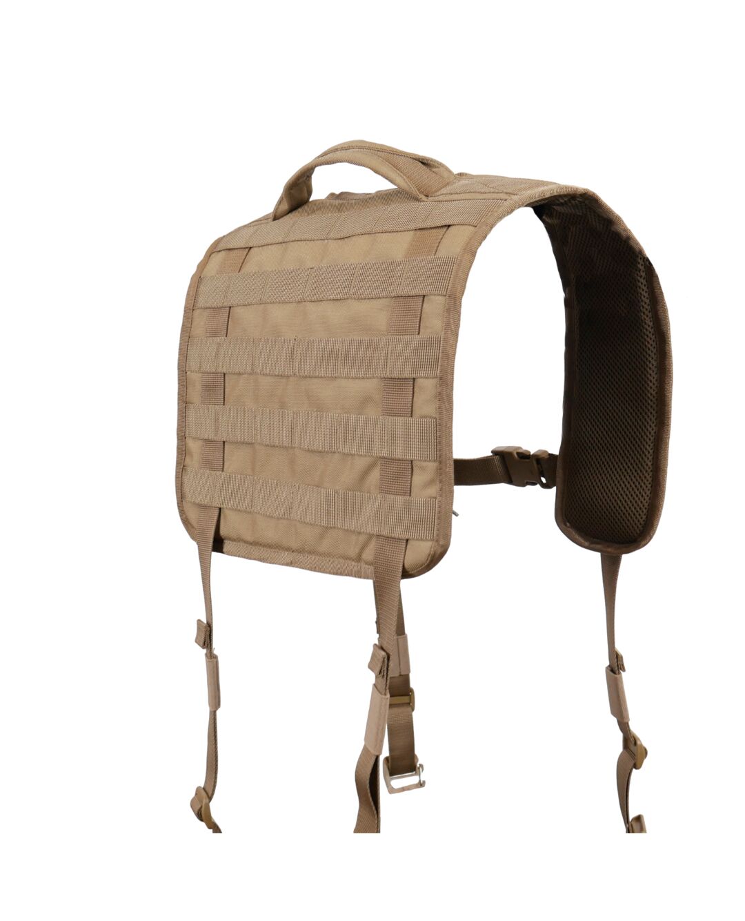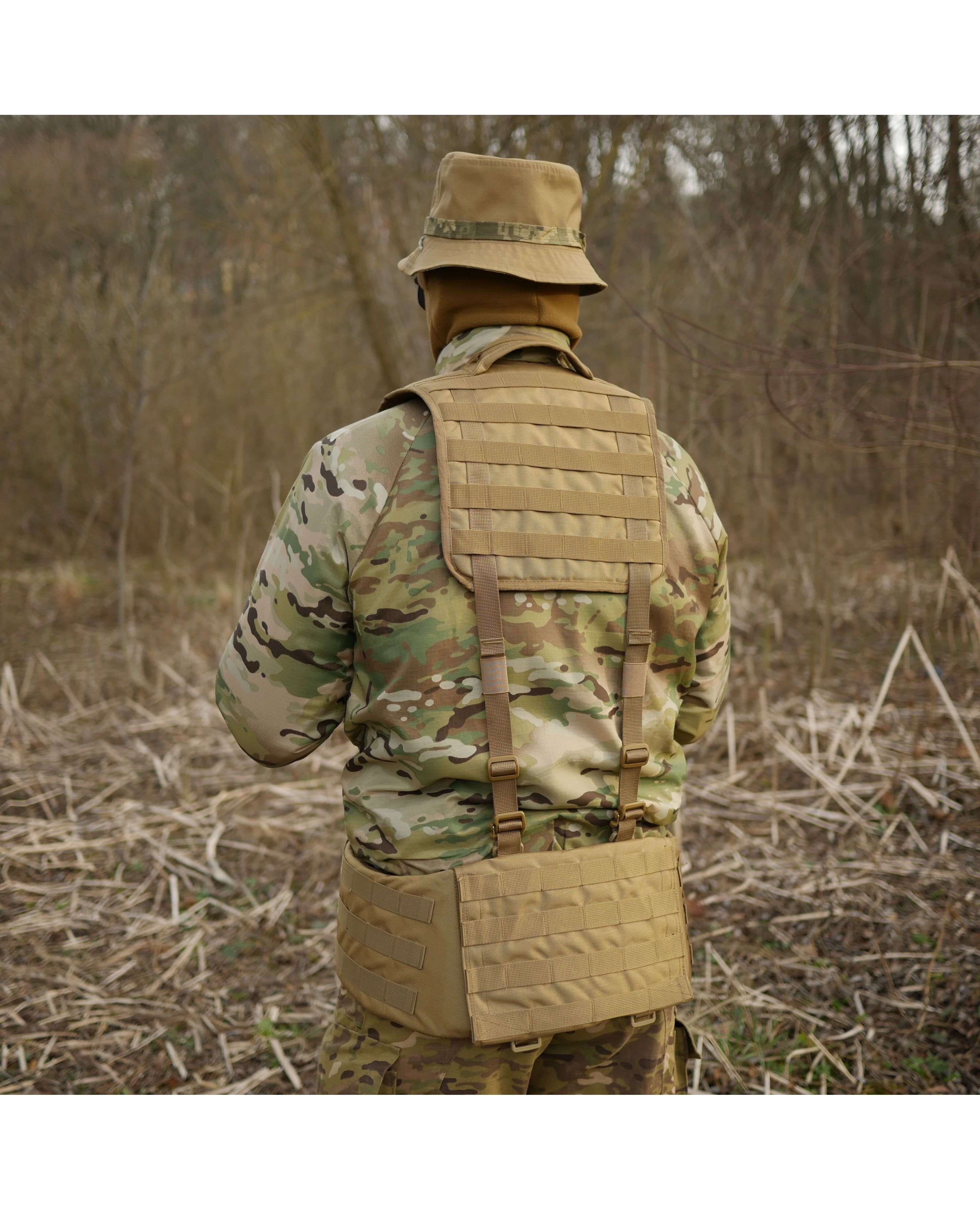 Конструкция. Плечевые лямки имеют рюкзачную конструкцию с системой MOLLE на спине для закрепления дополнительного снаряжения. Обладают внутренним демпферным слоем пены толщиной 5 мм и мягкой 3D сеткой для вентиляции. На лямках предусмотрено 5 рядов MOLLE по спине и по 4 спереди. Нагрудный соединительный ремень позволяет регулировать ширину лямок.