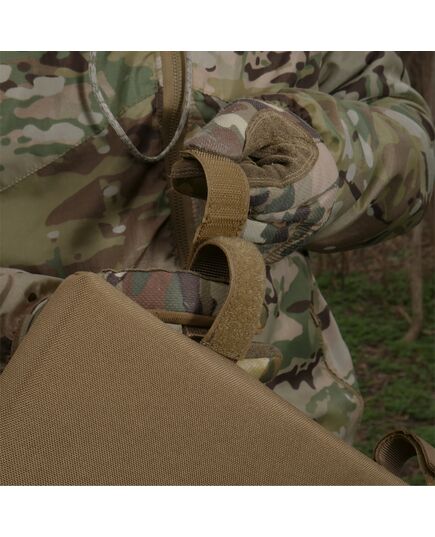 - также можно фиксировать сиденье с помощью специальных строп на липучке на систему Molle на плитоноске или пояс РПС;