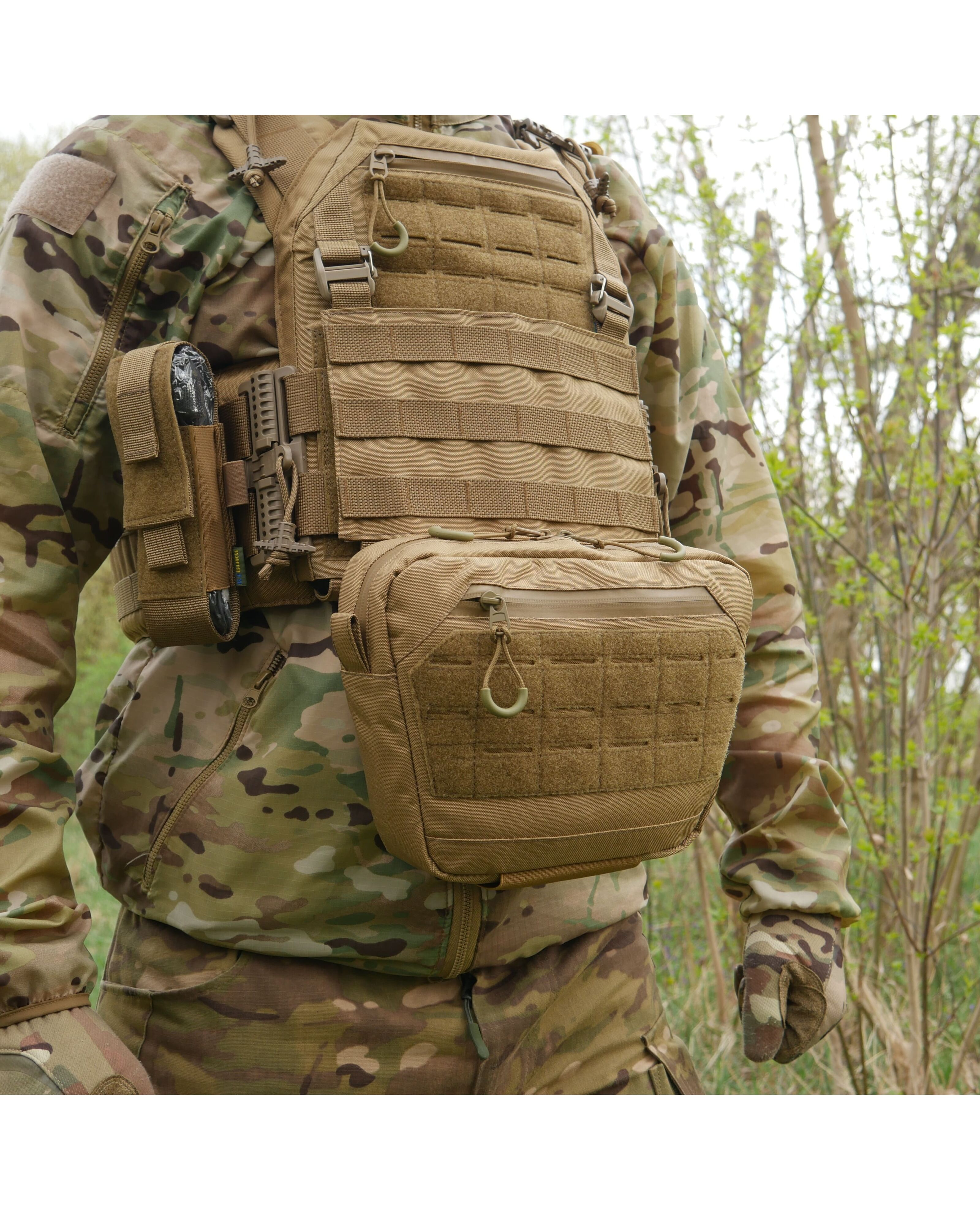 Фронтальная панель велкро, которая изготовлена по технологии LaserCut также имеет систему molle, которая позволяет удобно закрепить как патч так и дополнительное снаряжение.