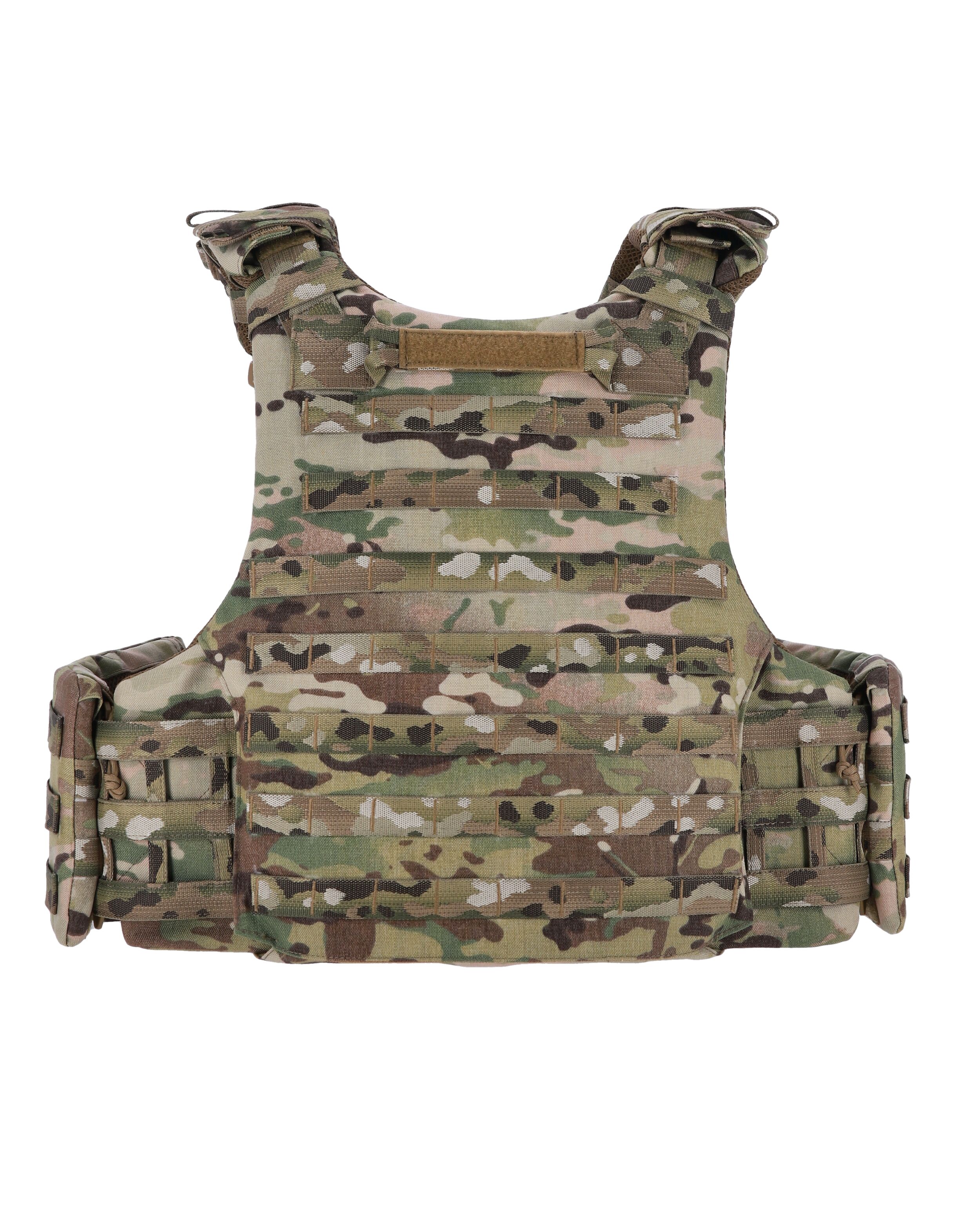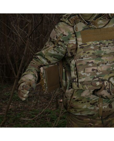 Впереди чехол бронежилета оснащен увеличенной Molle-панелью в пять строп по высоте и имеет ширину в 8 ячеек, что позволяет разместить сразу четыре итога под один или два магазина. Усиленная панель с прорезями в верхней части позволит разместить не только ваши любимые патчи, но и Molle-совместимое снаряжение, например административный итог или крепление для телефона.