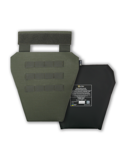 Напашник-фартук от компании Kiborg обеспечивает дополнительную защиту паховой зоны от поражений отломков, рикошетов и пистолетных выстрелов за счет использования баллистической защиты 1-го класса от компании Militex. Крепится напашник с помощью липучки (велкро панели).