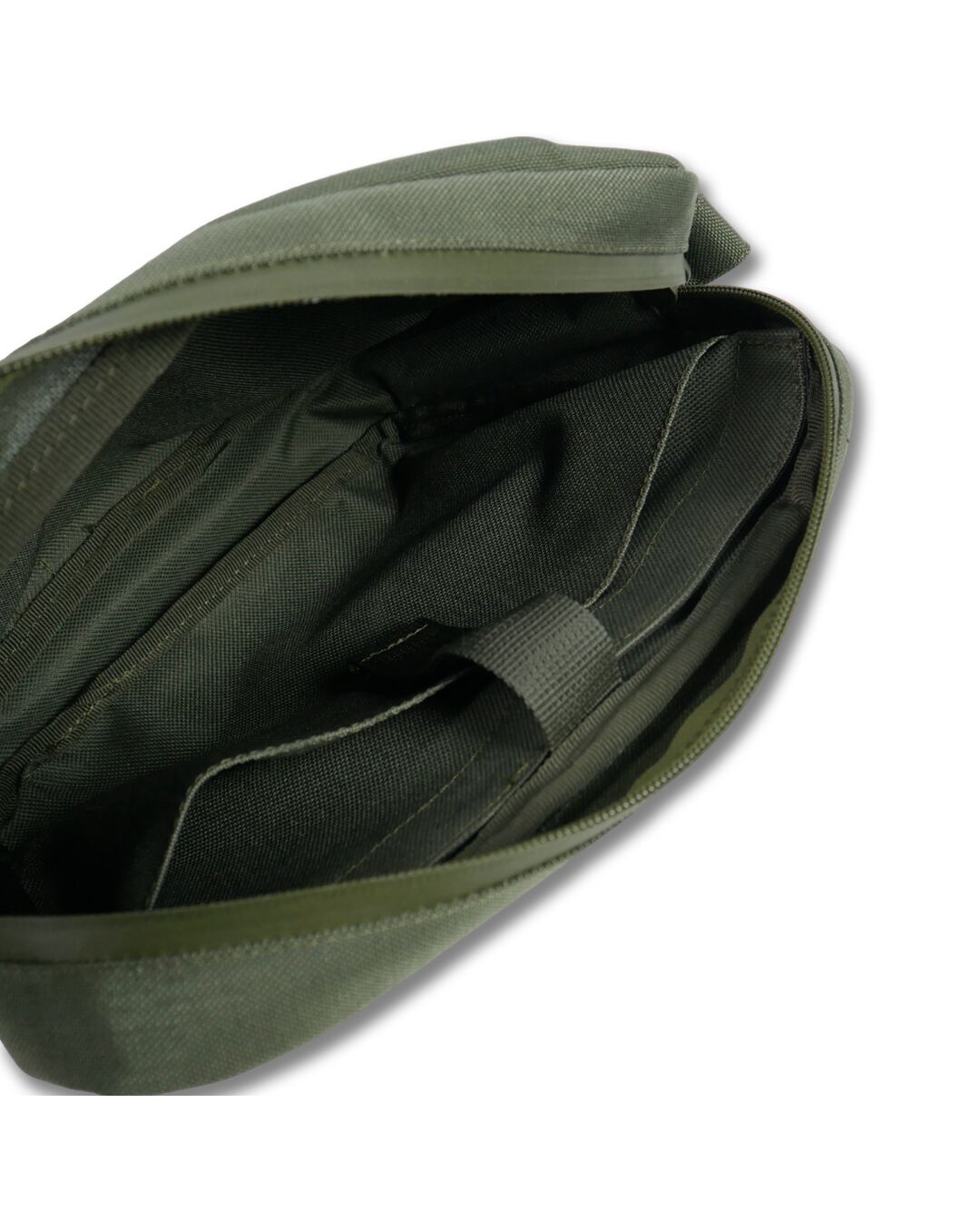 Сумка-напашник имеет 4 отделения, 3 внутри и одно фронтальное, позволяющее вместить вещи первой необходимости. Дополнительно в задний карман сумки-напашника, который закрывается на велкро, можно установить баллистический пакет 1 класса от компании Militex. Снизу изделия мы добавили эластичную крепь для турникета, а именно резинку 10см.
