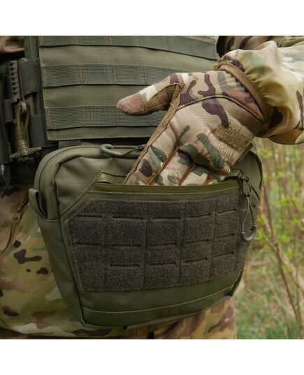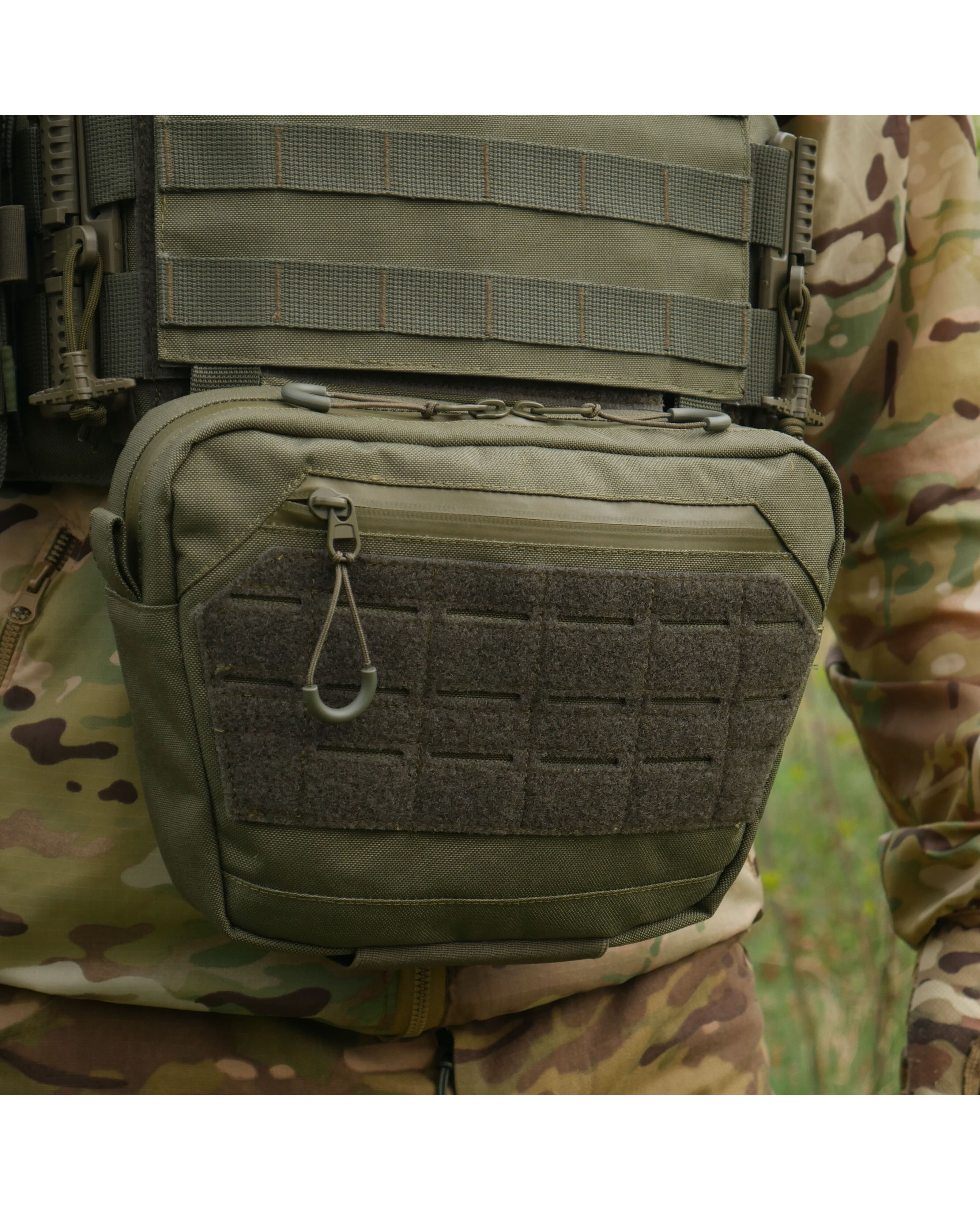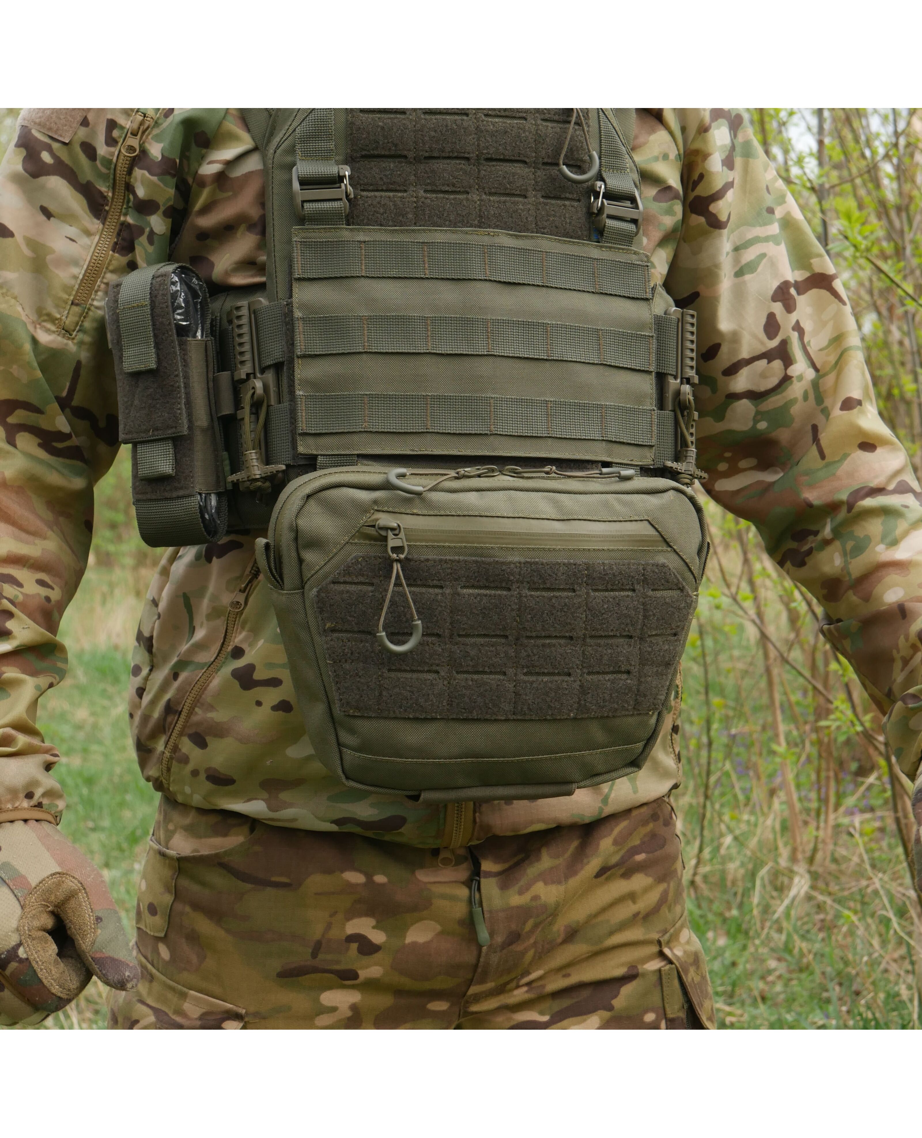 Фронтальная панель велкро, которая изготовлена по технологии LaserCut также имеет систему molle, которая позволяет удобно закрепить как патч так и дополнительное снаряжение.