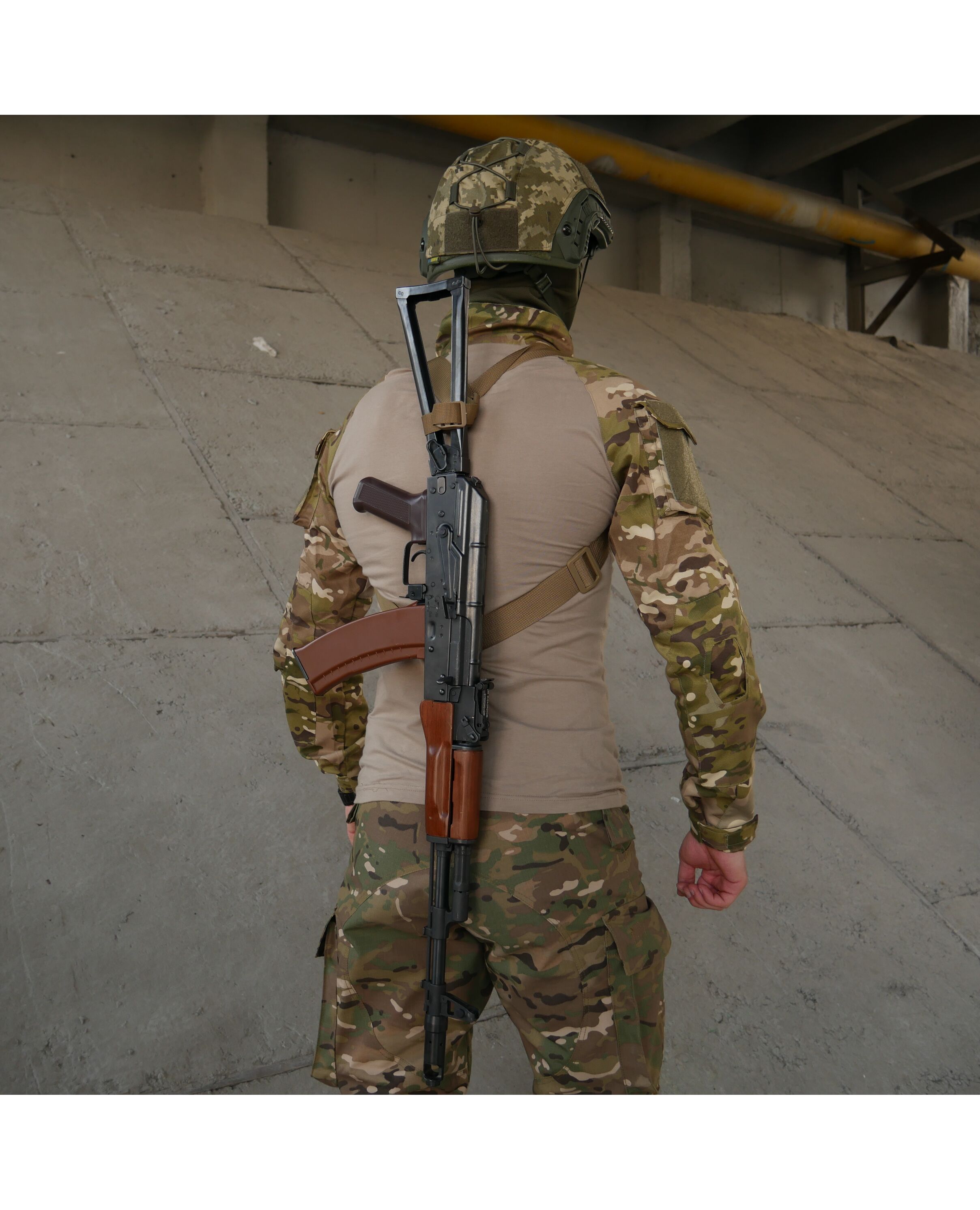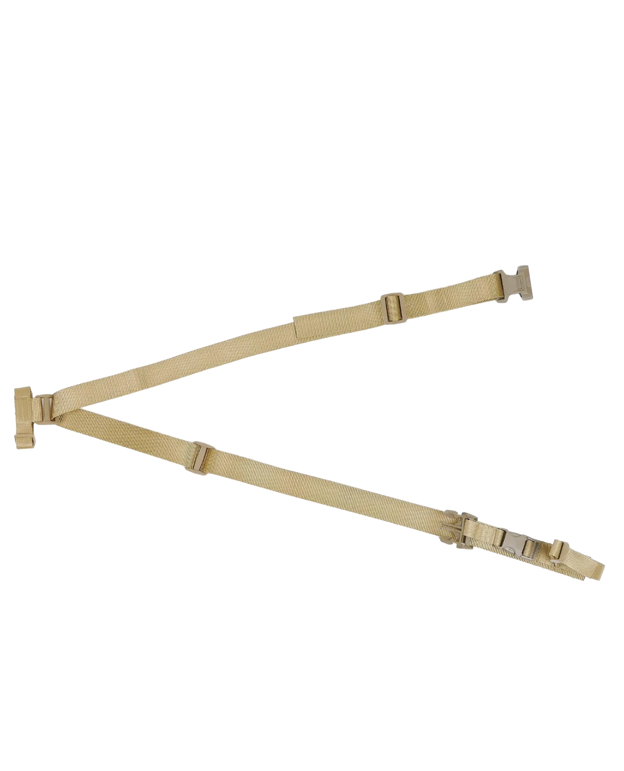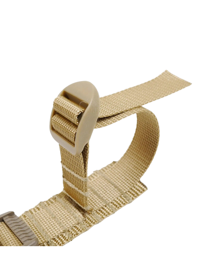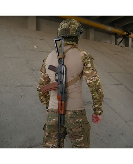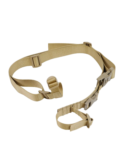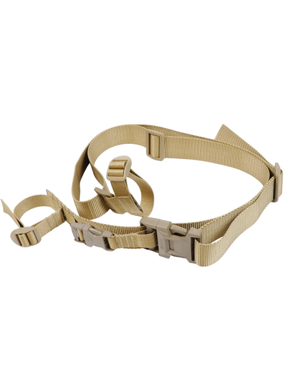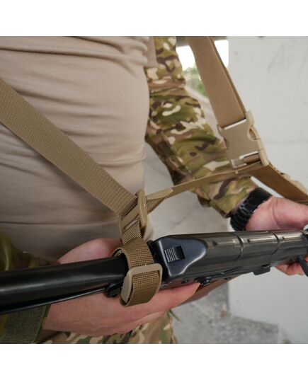 Крепление ремня к оружию осуществляется с помощью перетяжек, которые в отличие от металлических карабинов исключают демаскующий лязг и звон. Функция быстрого сброса оружия обеспечивается крепким 40 мм фастексом.