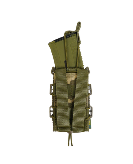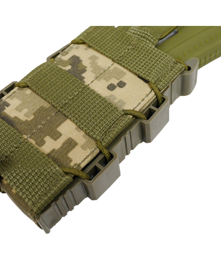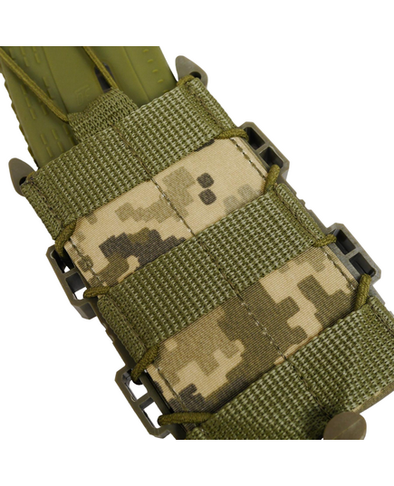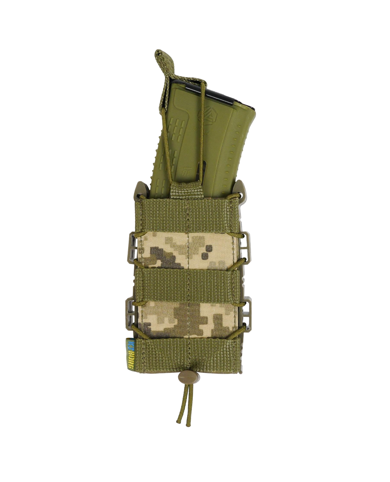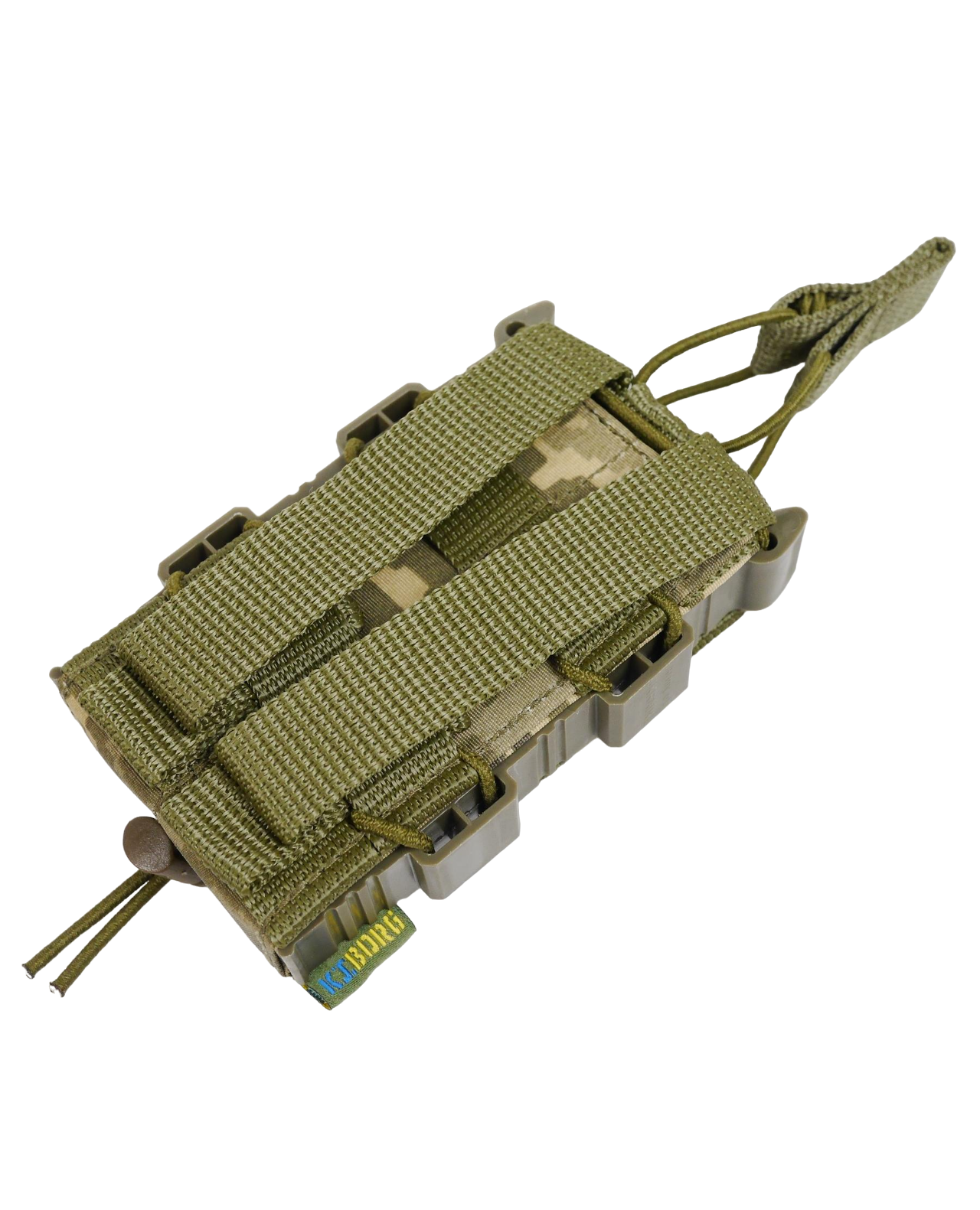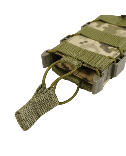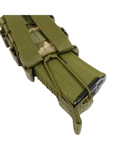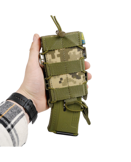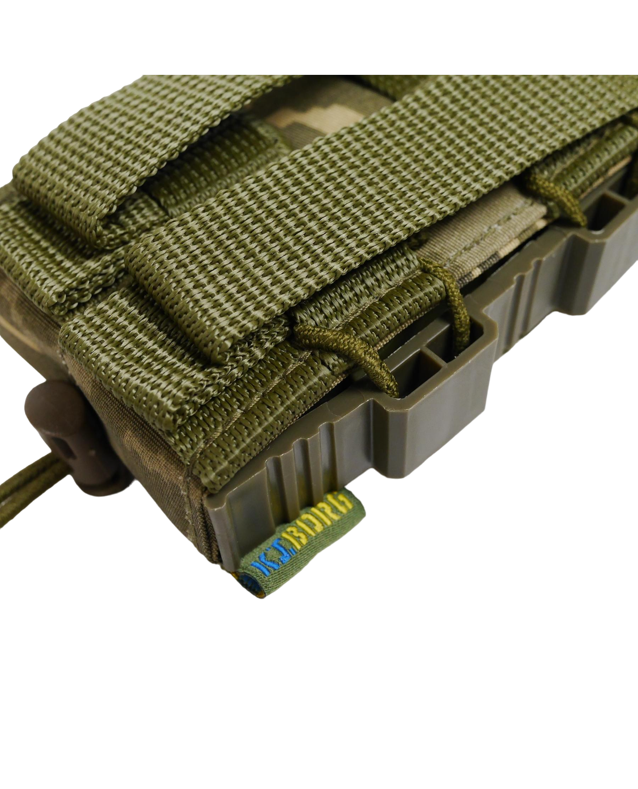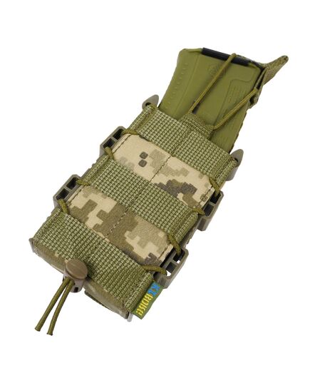 Сила сжатия магазина регулируется шнурком с качественным фиксатором, которым стянут итог. Сверху имеется дополнительный съемный фиксатор на резинке.