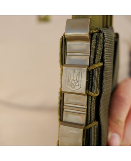 Боковые стенки и низ подсумка представляют собой прочный каркас из ударопрочного пластика, благодаря которому осуществляется фиксация магазина внутри подсумка.
