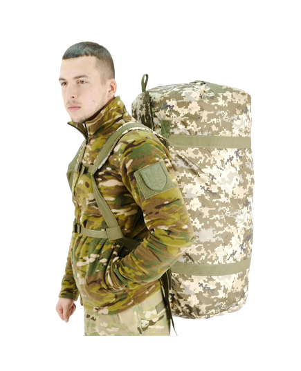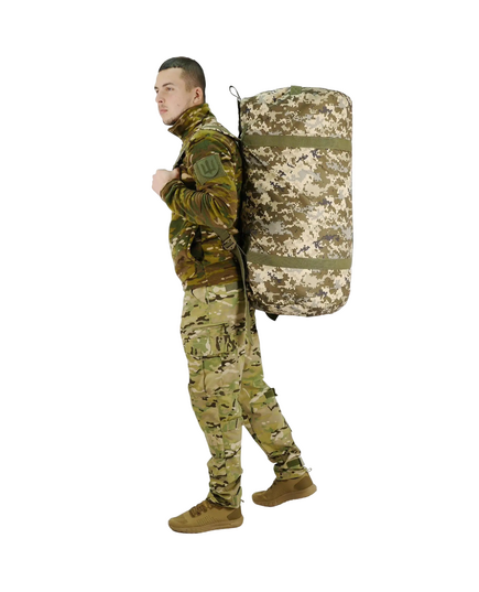 Баул Kiborg 120 выполнен из усиленной ткани Oxford 600D, с водонепроницаемой пропиткой. Конструкция баула предполагает его переноску двумя способами: - на плечах (как рюкзак) - в руке. Для этого баул оборудован двумя мягкими лямками из крепкой стропы шириной 5 см. Лямки дают возможность носить баул на спине как рюкзак, и в руках как обычную сумку.