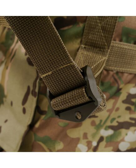 Для более удобного использования наполненного баула предусмотрен фастекс, который застегивает на груди 2 лямки в положении рюкзака.