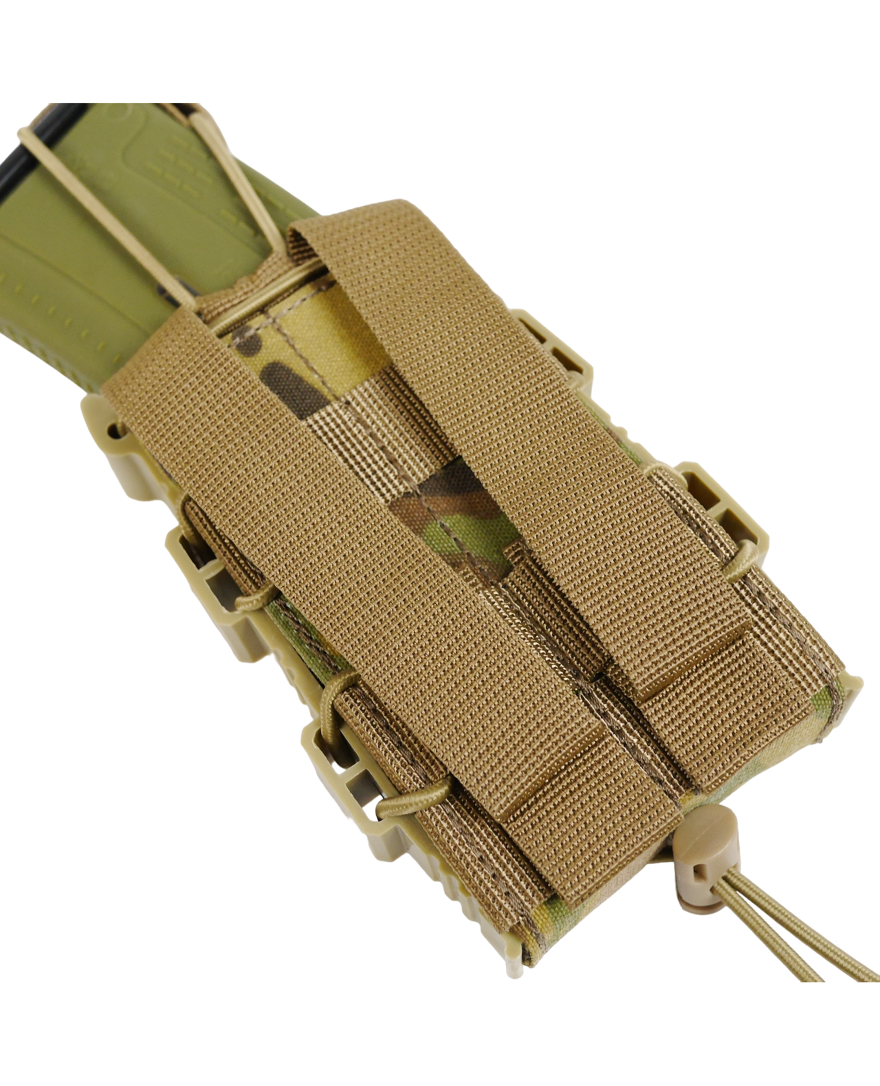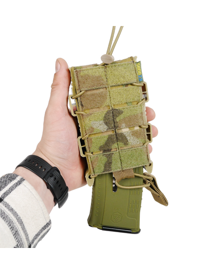 Сила сжатия магазина регулируется шнурком-резинкой с качественным фиксатором, которым снят итог. Сверху имеется дополнительный съемный фиксатор на резинке.