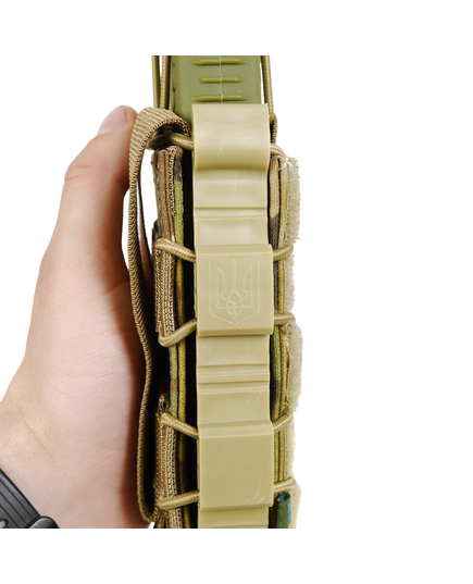 Передняя часть итога имеет велкро-панель вырезанным способом Лазер-Touch, дополнительно усиленная стропой 25мм. Все это составляет полноценную систему Molle для возможности крепления на ней дополнительных элементов.