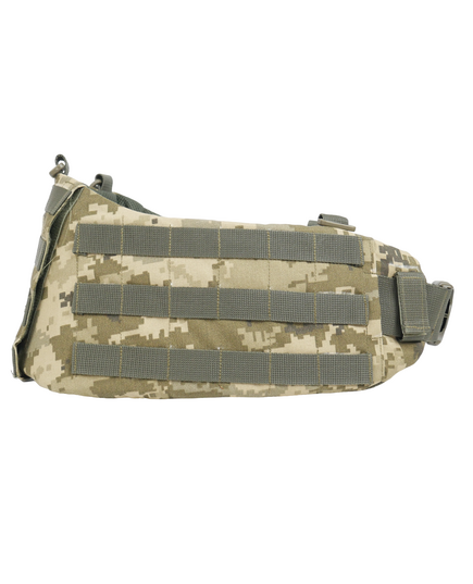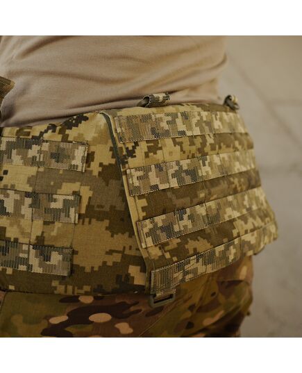 На боковых частях три ряда с-мы molle для крепления подсумков. Задняя часть увеличена и выполнена с 4-мя рядами molle, что позволяет максимально снарядить пояс необходимыми подсумками.
