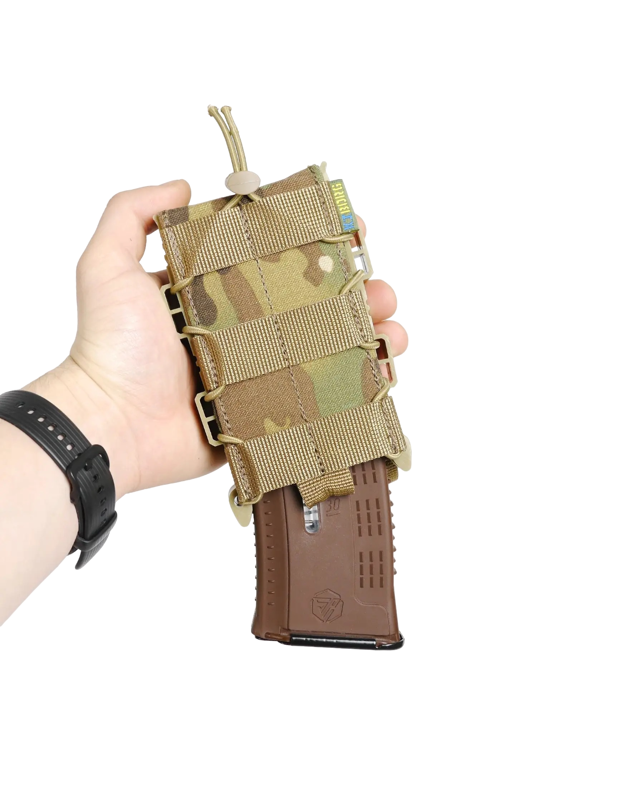 Сила стискання магазину регулюється шнурком-резинкою з якісним фіксатором, яким стянутий підсумок. Зверху є додатковий фіксатор на резинці, який за потреби можна зняти.